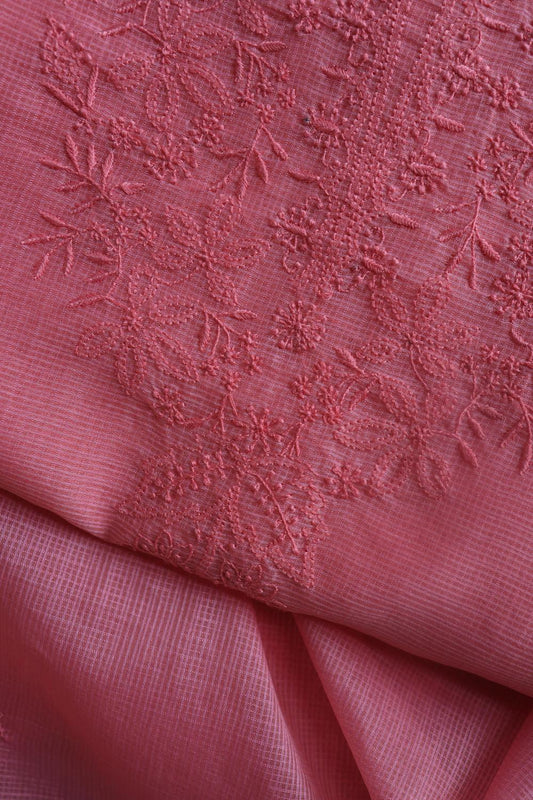 Turkish Rose Kota Chikankari Unstitched Fabric