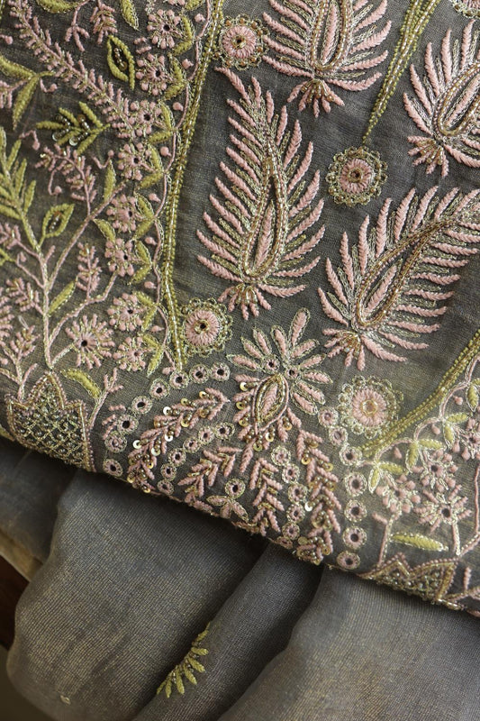Cloudy Grey Tissue Silk Chikankari Unstitched Fabric