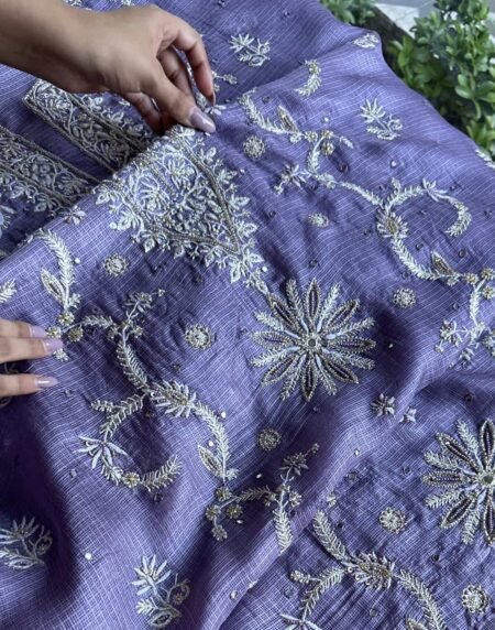 Lavender Mirror work Tussar Kota Chikankari Kurta set fabric