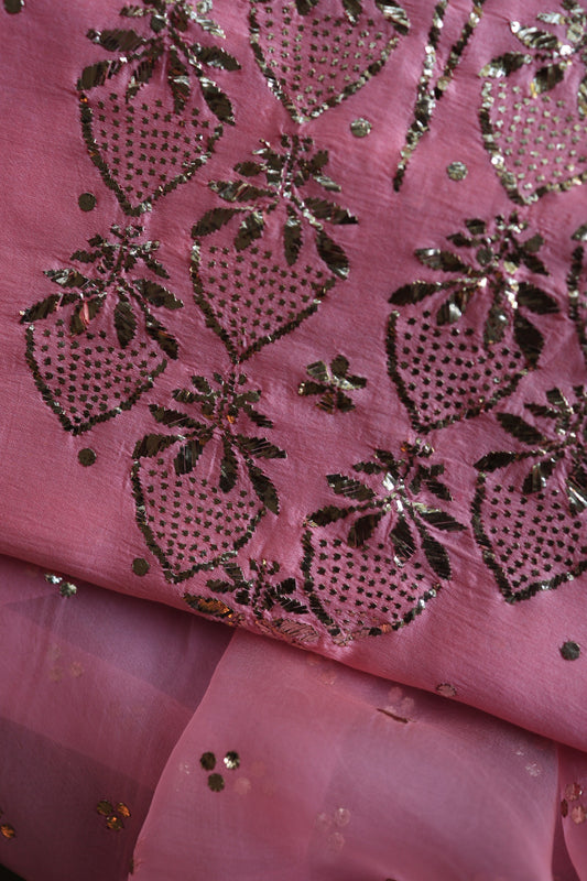 Pink Plum Chanderi Silk Mukaish Badla Unstitched Fabric
