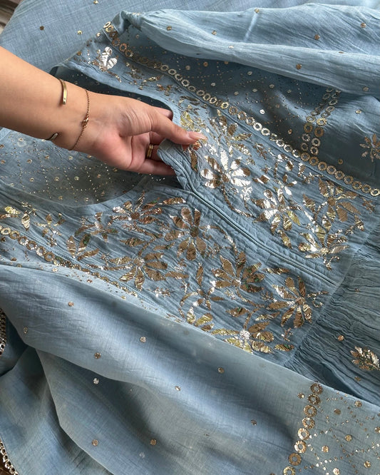 Powder Blue Mukaish Mul Chanderi Silk Dress