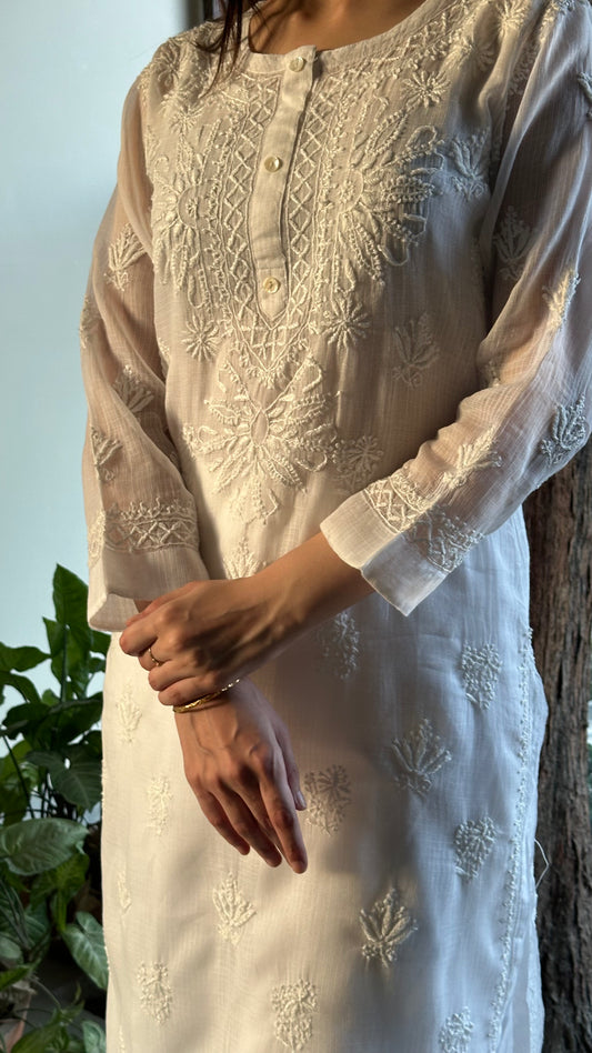 White Floral Kota Chikankari Kurta