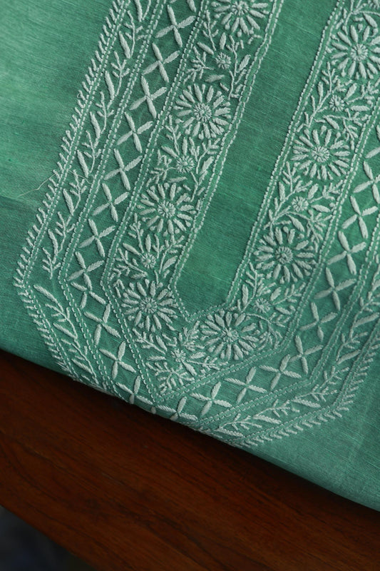 Sea Green Linen Chikankari Unstitched Men's Kurtas Fabric
