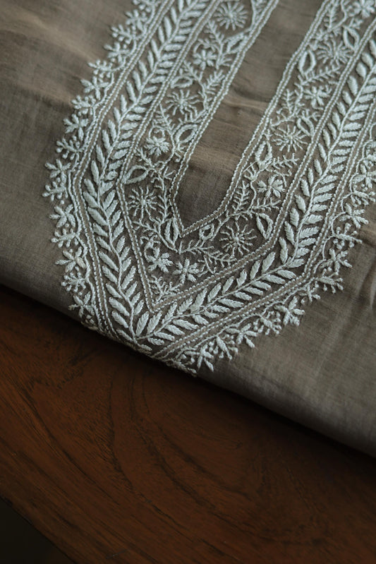 Smokey Grey Mulmul Chikankari Unstitched Men's Kurtas Fabric