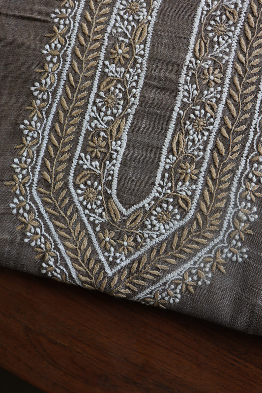 Grey Moonga Silk Chikankari Men’s Kurta Fabrics