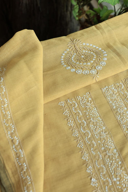 Pastel Yellow Linen Chikankari Unstitched Men's Kurtas Fabric