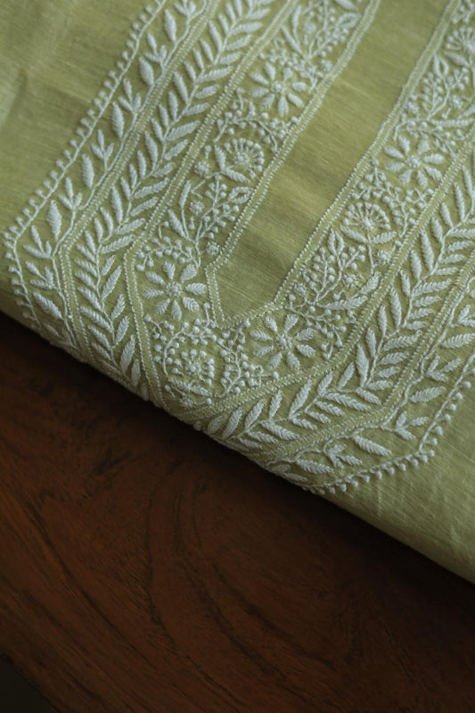 Green Linen Chikankari Unstitched Men's Kurtas Fabric