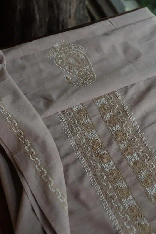 Beige Mulmul Chikankari Unstitched Men's Kurtas Fabrics