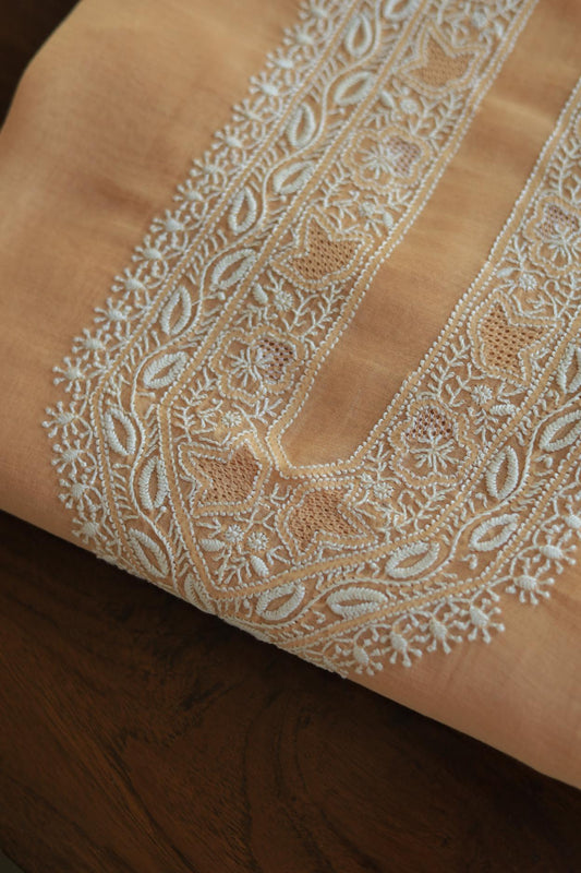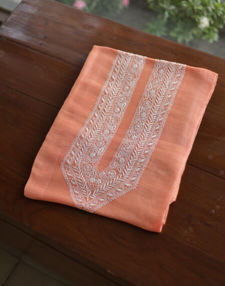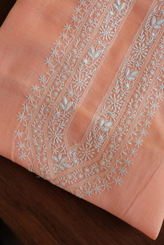 Peach Mulmul Chikankari Unstitched Men's Kurtas Fabric