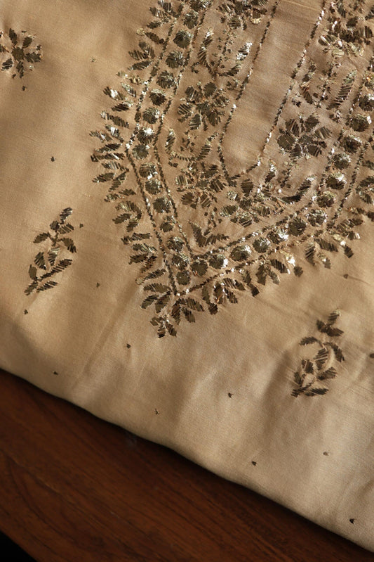 Natural Beige Chanderi Mukaish Badla Unstitched Chikankari Unisex Kurtas