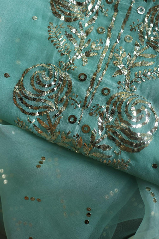 Sea Green Noor Organza Silk Mukaish Badla Unstitched Kurta Dupatta Set