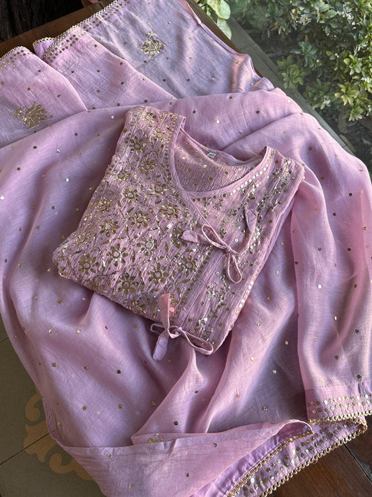 Lavender Mukaish Mul Chanderi Silk Ready To Wear Dress