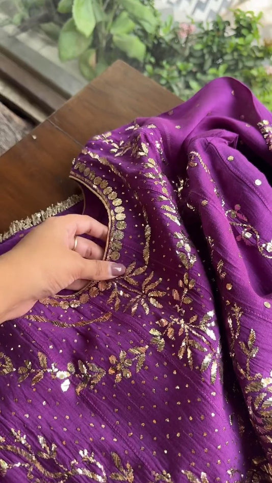 Deep Purple Badla Mukaish Chanderi Silk Anarkali Kurta Set