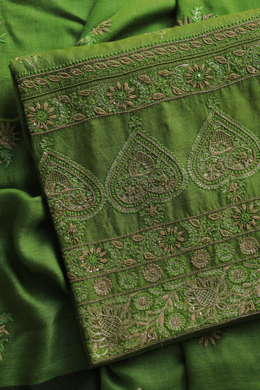 Sold outGreen Pashmina x Chikankari Fabrics
