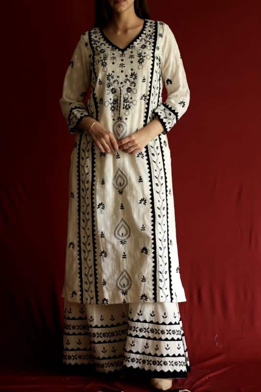 Black & White Applique Work With Fine Chikankari Ready to Wear Kurta