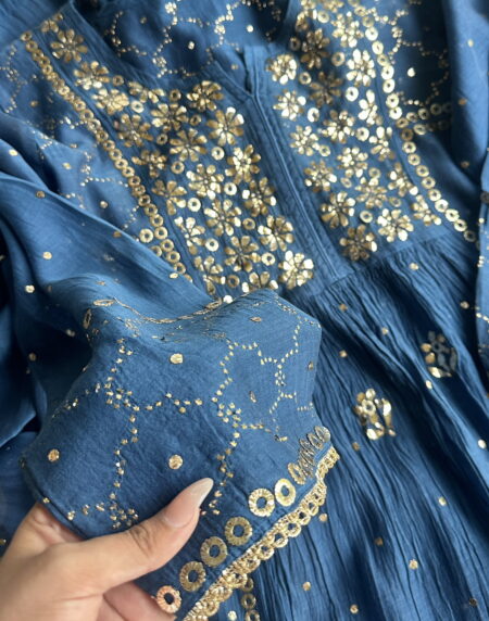 Royal Blue Mukaish Mul Chanderi Silk Dress