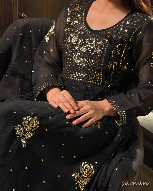 Black Mukaish Kamdani Mul Chanderi Angarkha