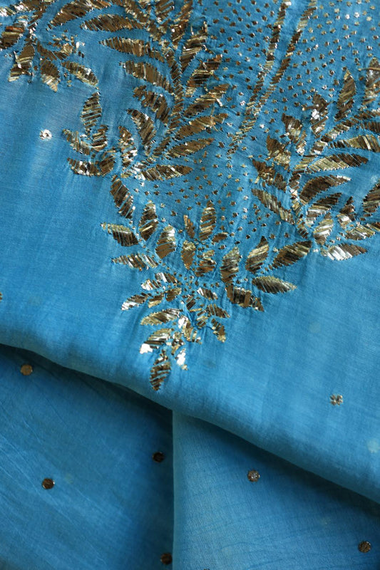 Blue Chanderi Silk Mukaish Badla Unstitched Fabrics