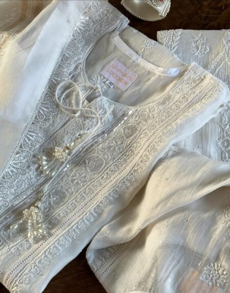 Mulmul Pearl White Chikankari Ready to Wear Kurta Set