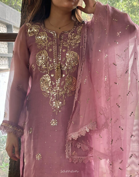 Purple Plum Noor Organza Mukaish Badla Kurta Dupatta Set