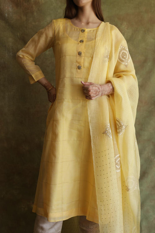 Butter Yellow Zari Kota Ready to Wear Kurta Set