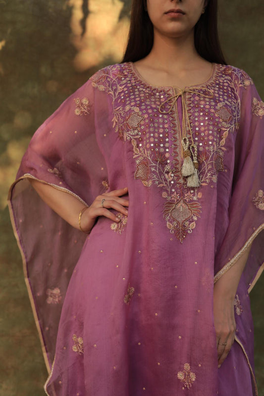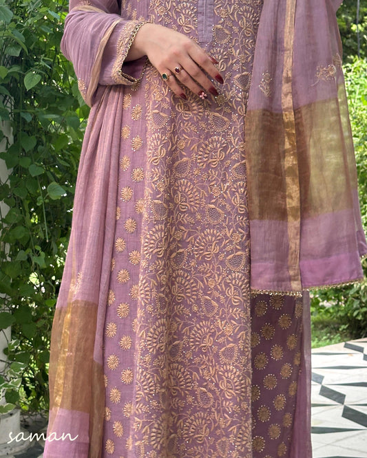 Dusty Lilac Tissue Silk Chikankari Kurta Set