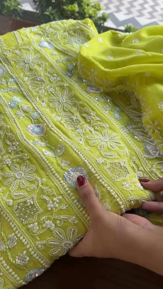 Semi Stitched Georgette Multi - Zardosi Chikankari Anarkali | Lime Neon