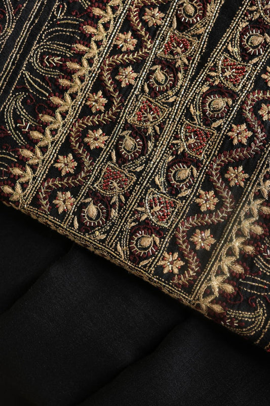 Navy Blue Shade Moonga Silk Chikankari Unstitched Fabric