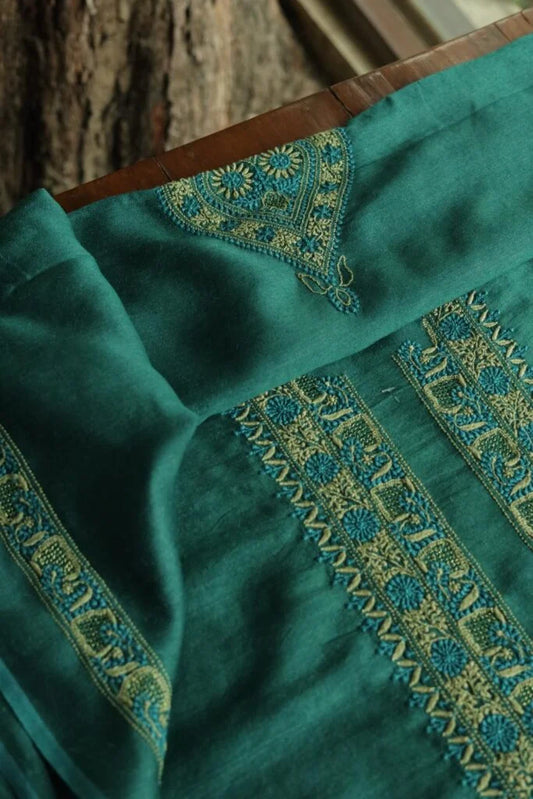 Mehndi Green Tissue Silk Chikankari Unstitched Fabric
