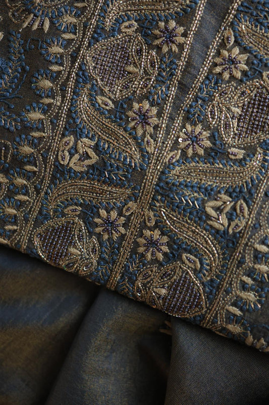 Mist Blue Roheen Tissue Silk Chikankari Unstitched Fabric