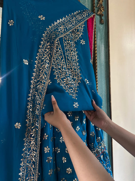 Prussian Blue RTW Mukaish Lucknowi Gharara Set