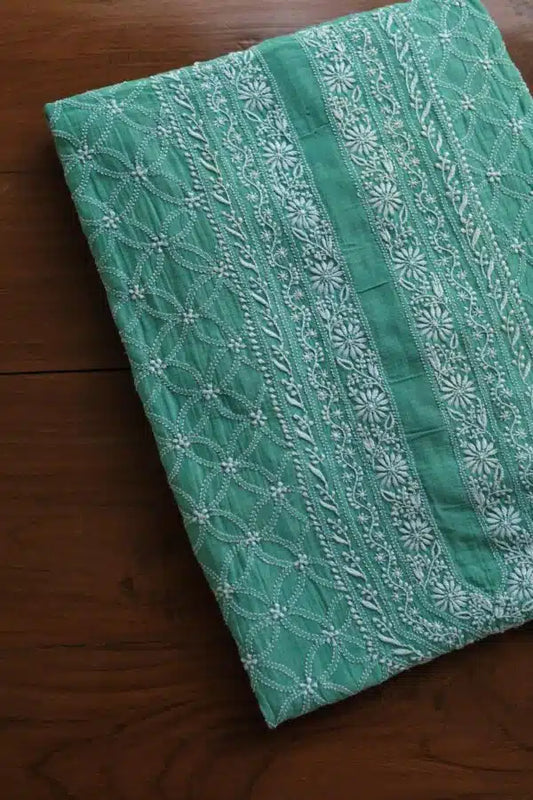 Green All Over Chikankari Malmal Unstitched Men's Kurtas Fabric