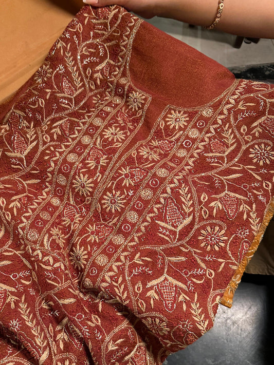 Rust Shade Tissue Silk Chikankari Unstitched Fabric