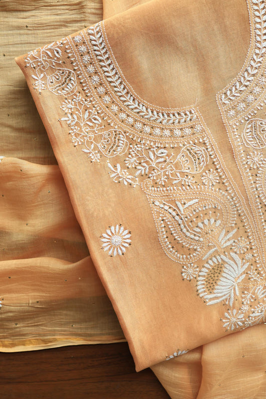 Gold Shade Tissue Silk Chikankari Unstitched Fabric