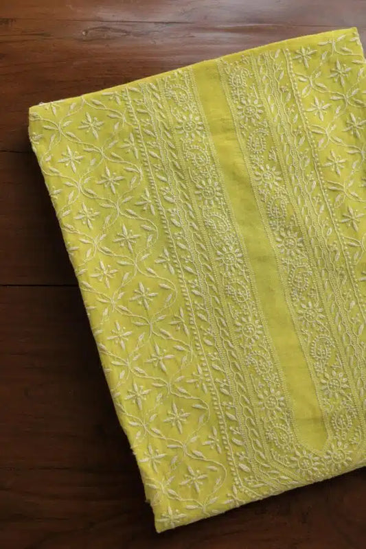 Yellow All Over Chikankari Malmal Unstitched Men's Kurtas Fabric