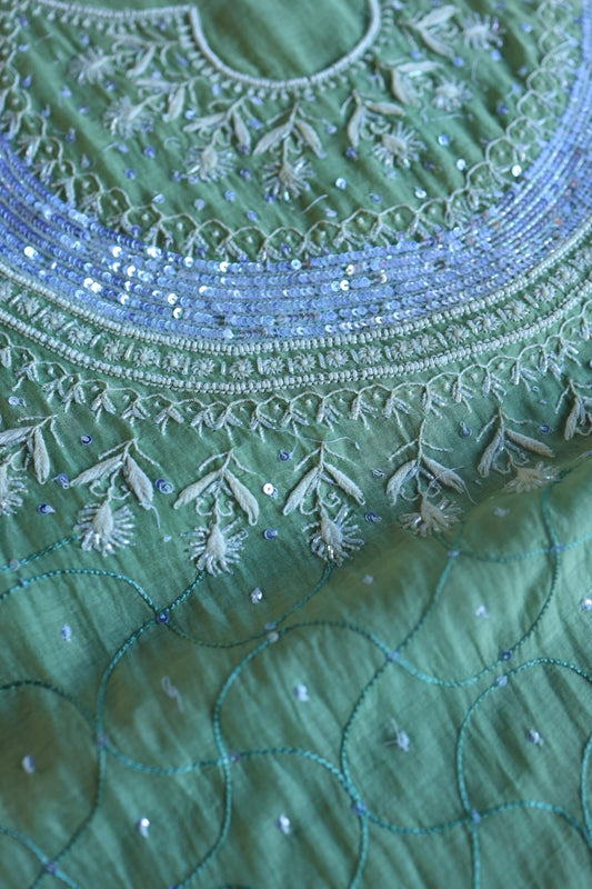 Sea Green Mal Chanderi Silk Chikankari With Sequins Unstitched Kurta Dupatta Set
