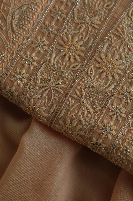 Peach Mal Cotton Chikankari Unstitched Kurta Dupatta Fabrics With Kamdani