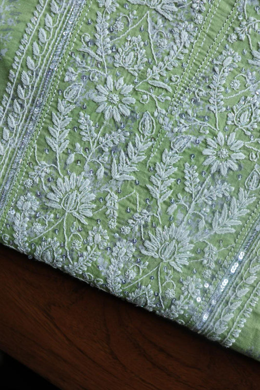 Green Cotton Chikankari Unstitched Kurta Fabrics