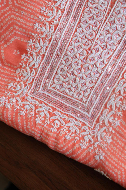 Peach Daraz Chanderi Chikankari Kurta Fabrics