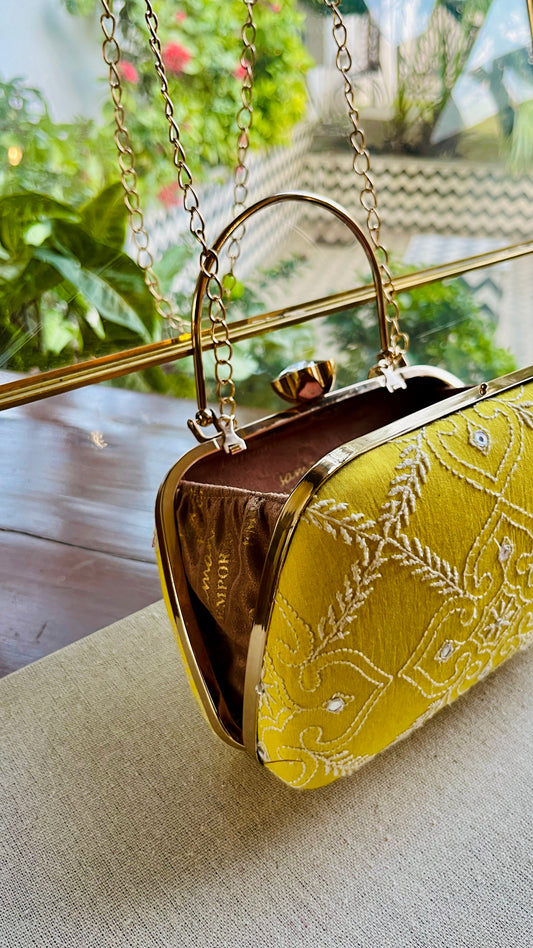 White Shade Velvet Ari Mukaish Zardosi Round Sling Bag