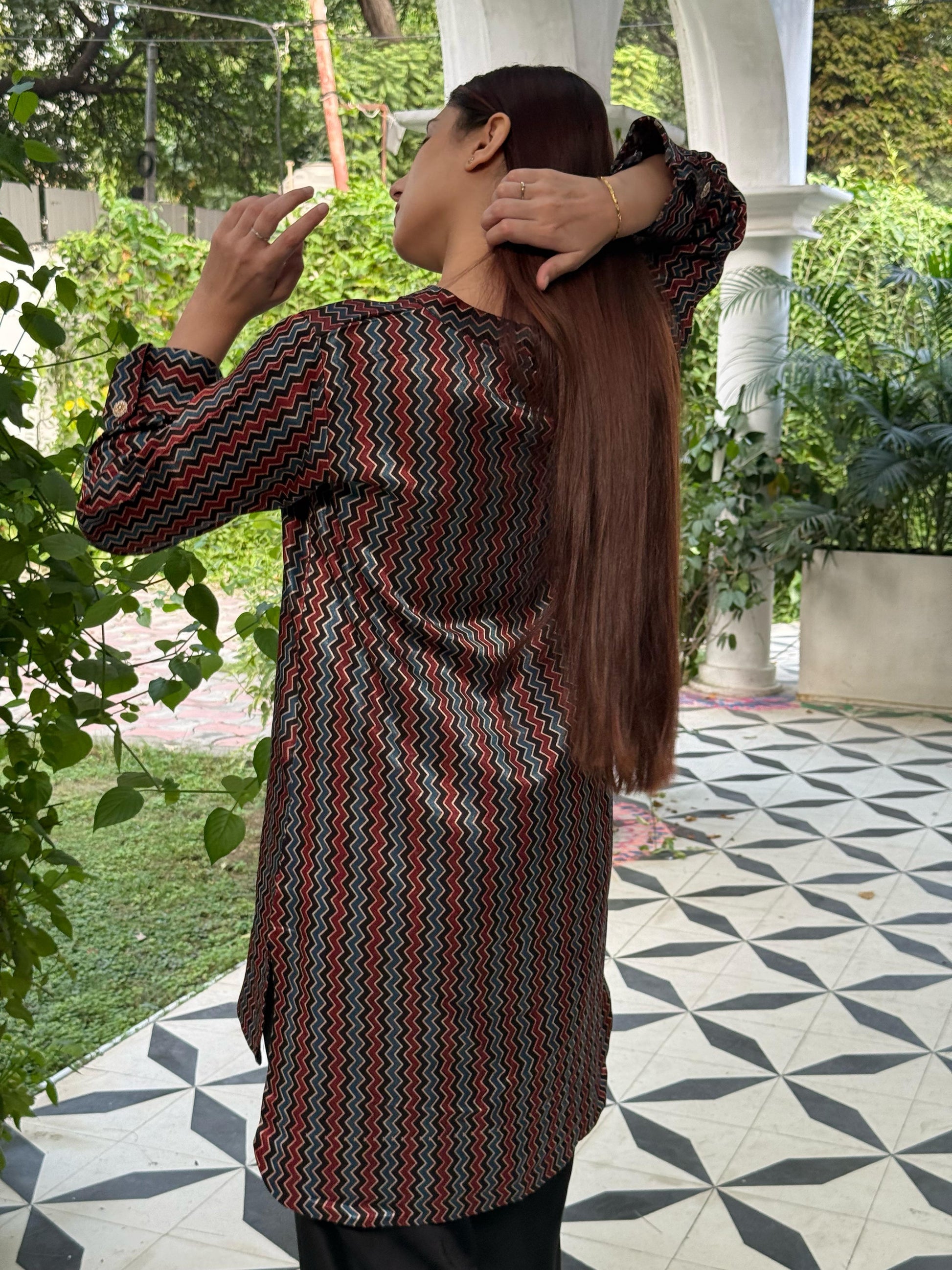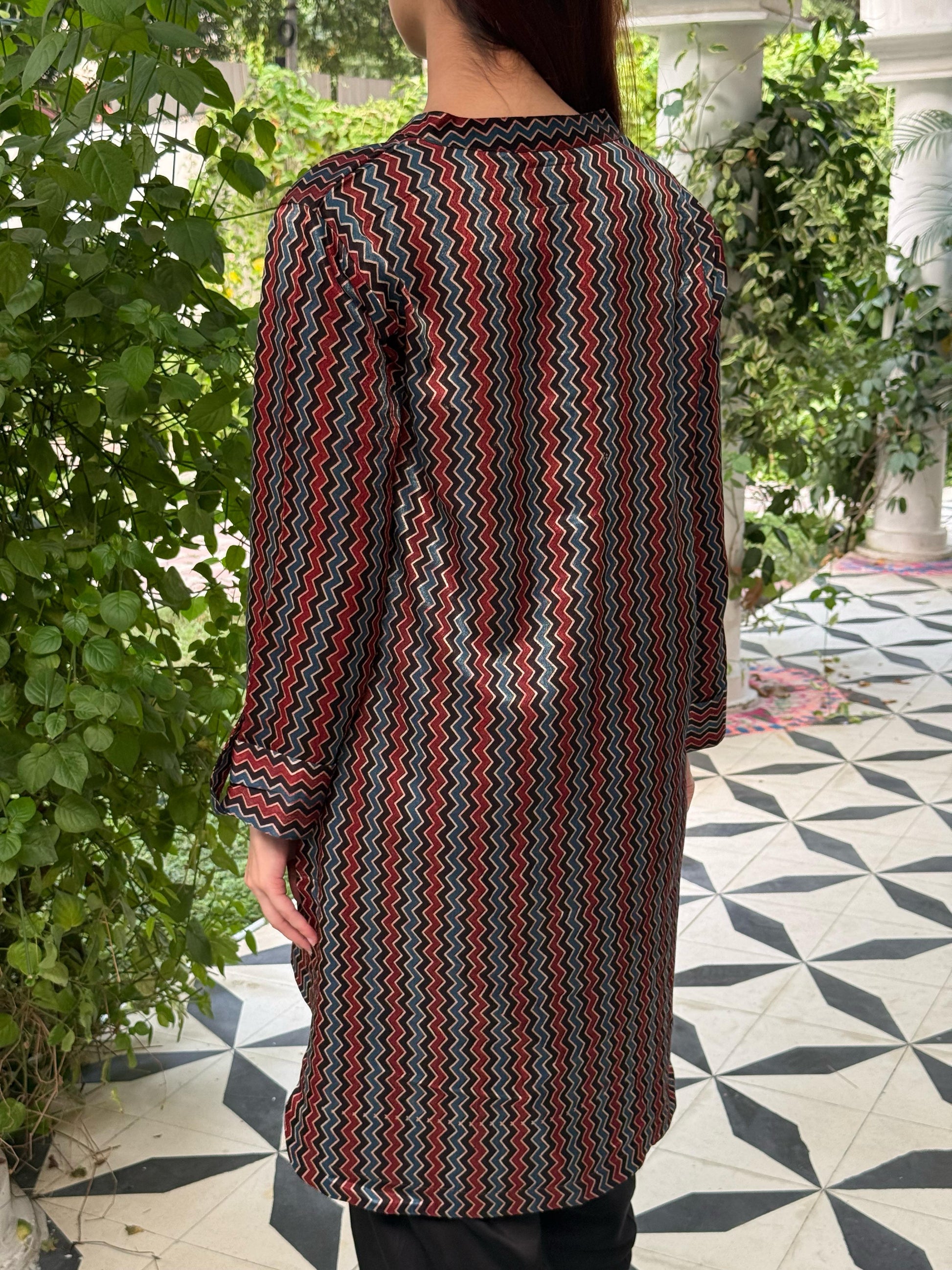 Ajrak Multi Shade Mashru Silk, Short Kurta