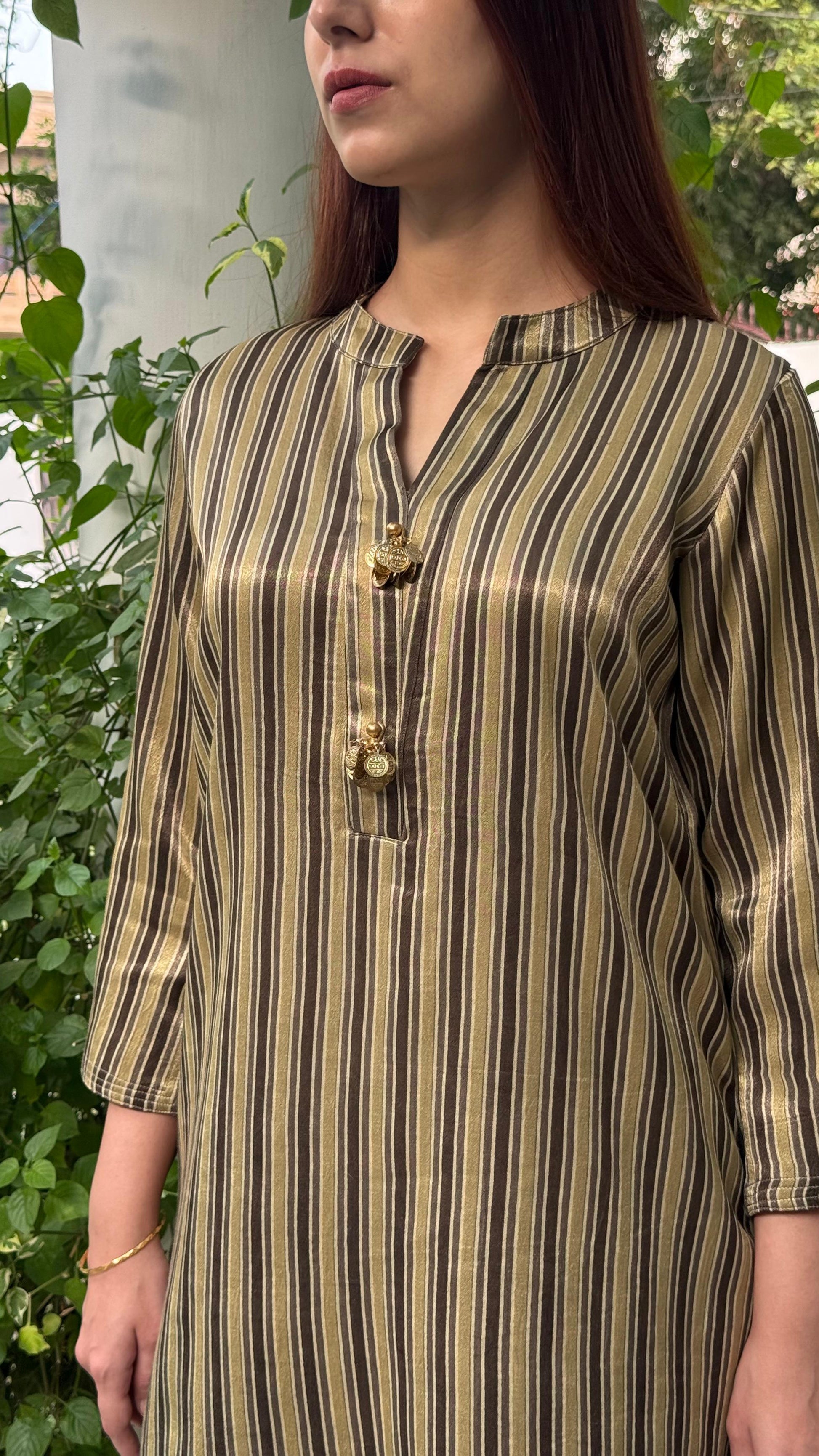 Ajrak Tan Brown Shade Mashru Silk, Short Kurta