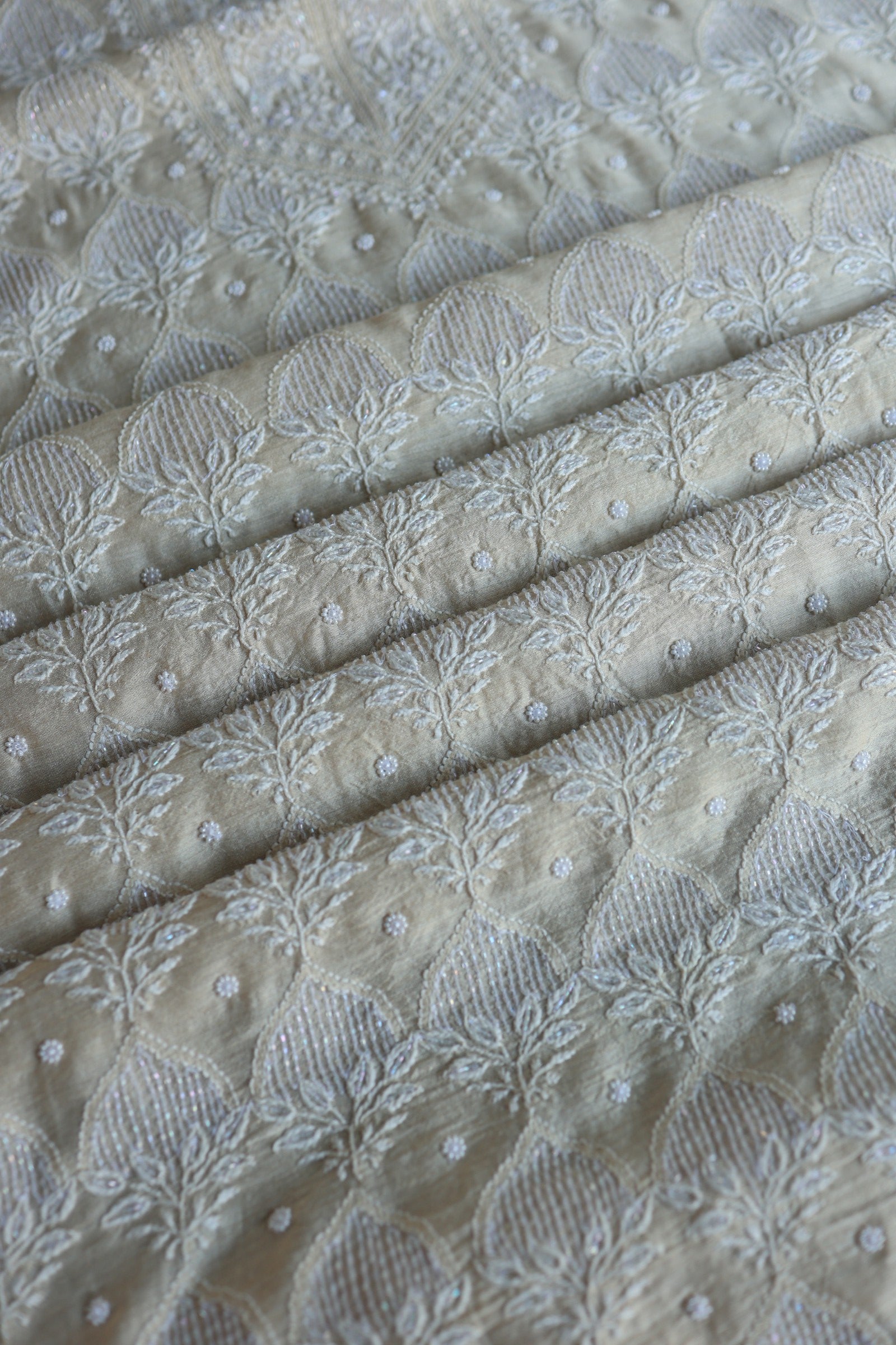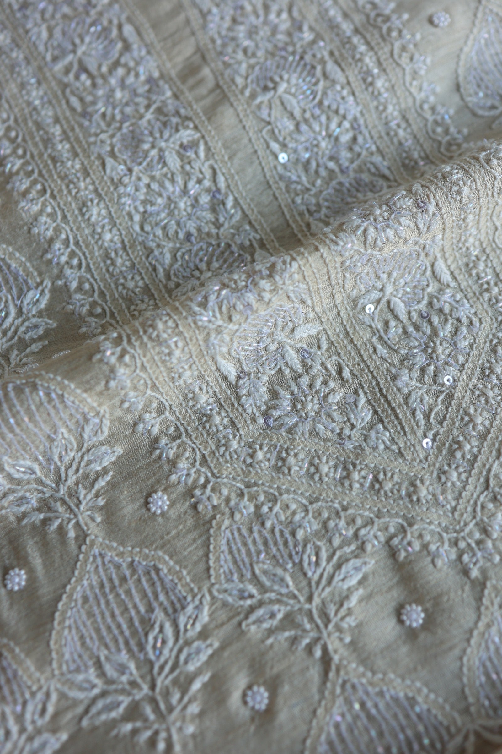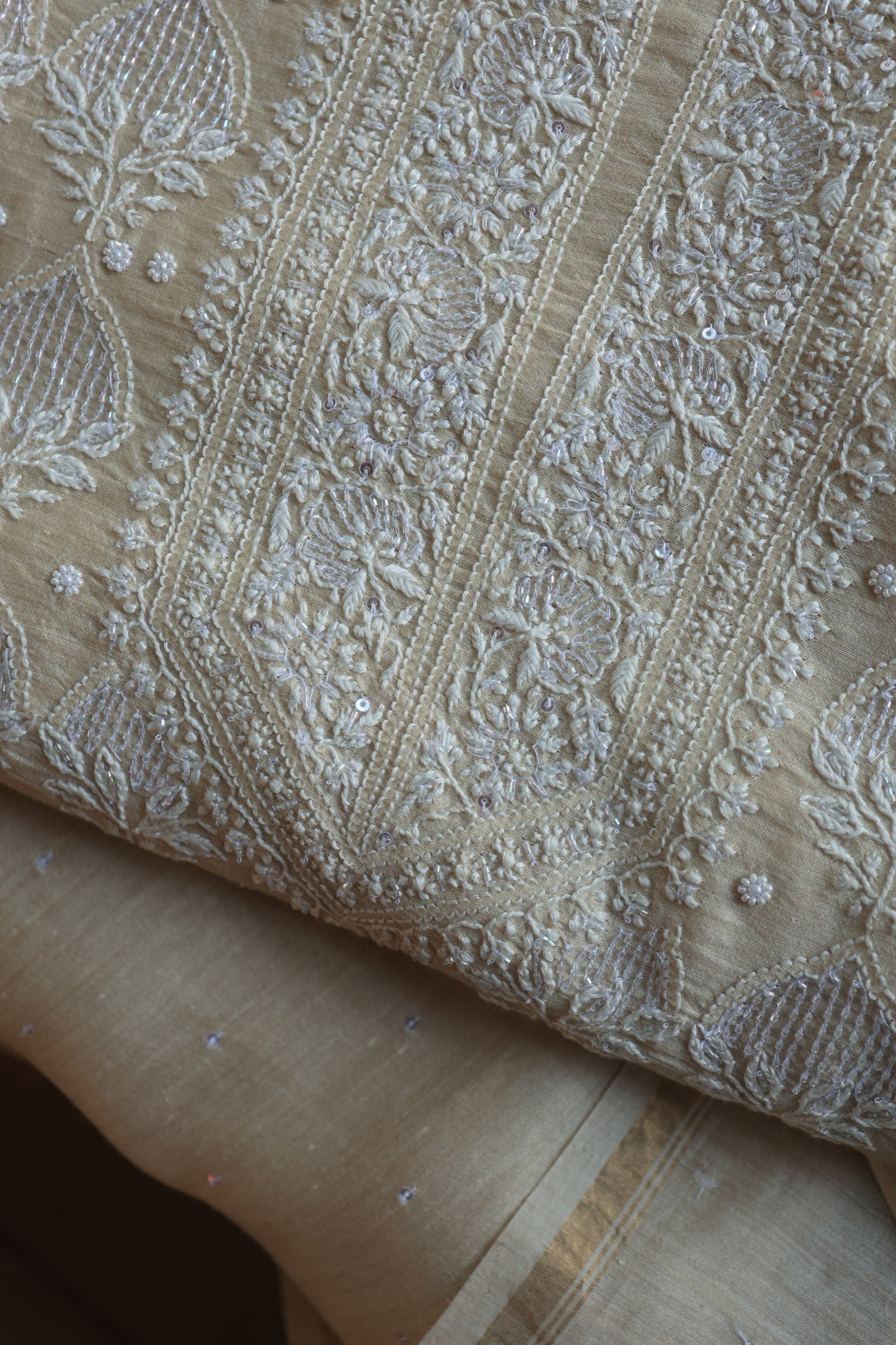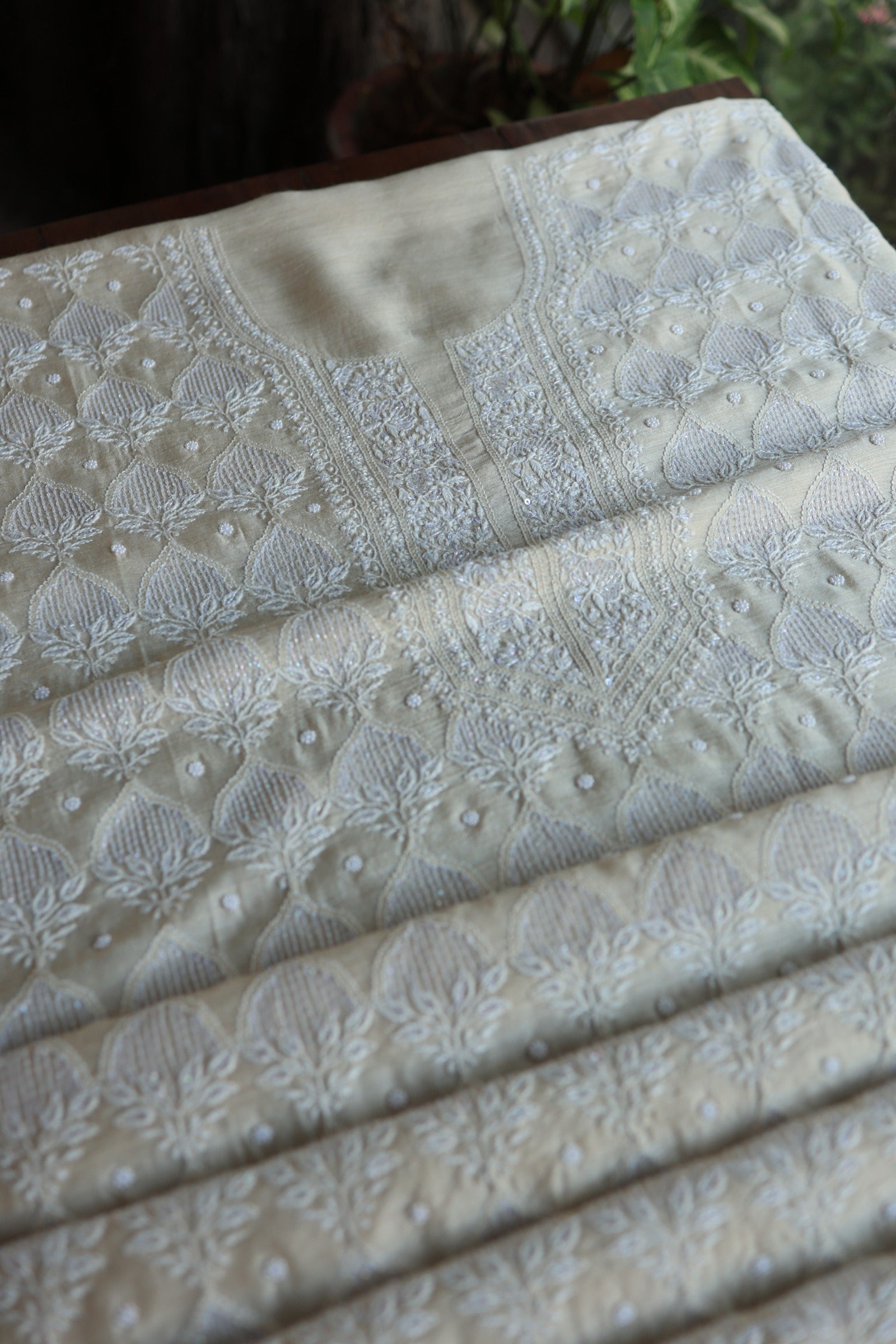 Basak Natural Moonga Silk Chikankari Unstitched Kurta Dupatta Fabric