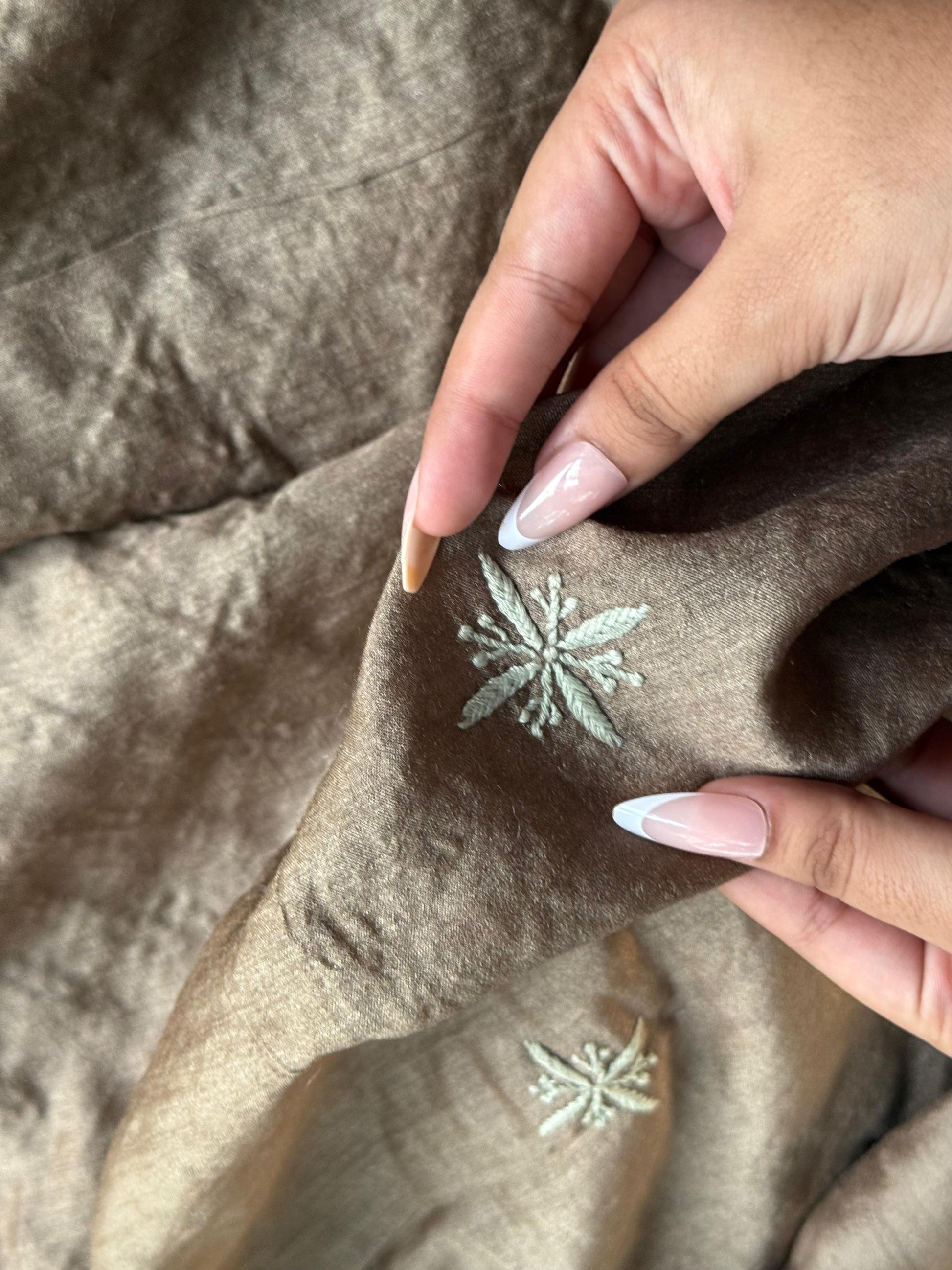 - → Dry Clean Only to maintain embroidery sharpness and prevent bead damage.