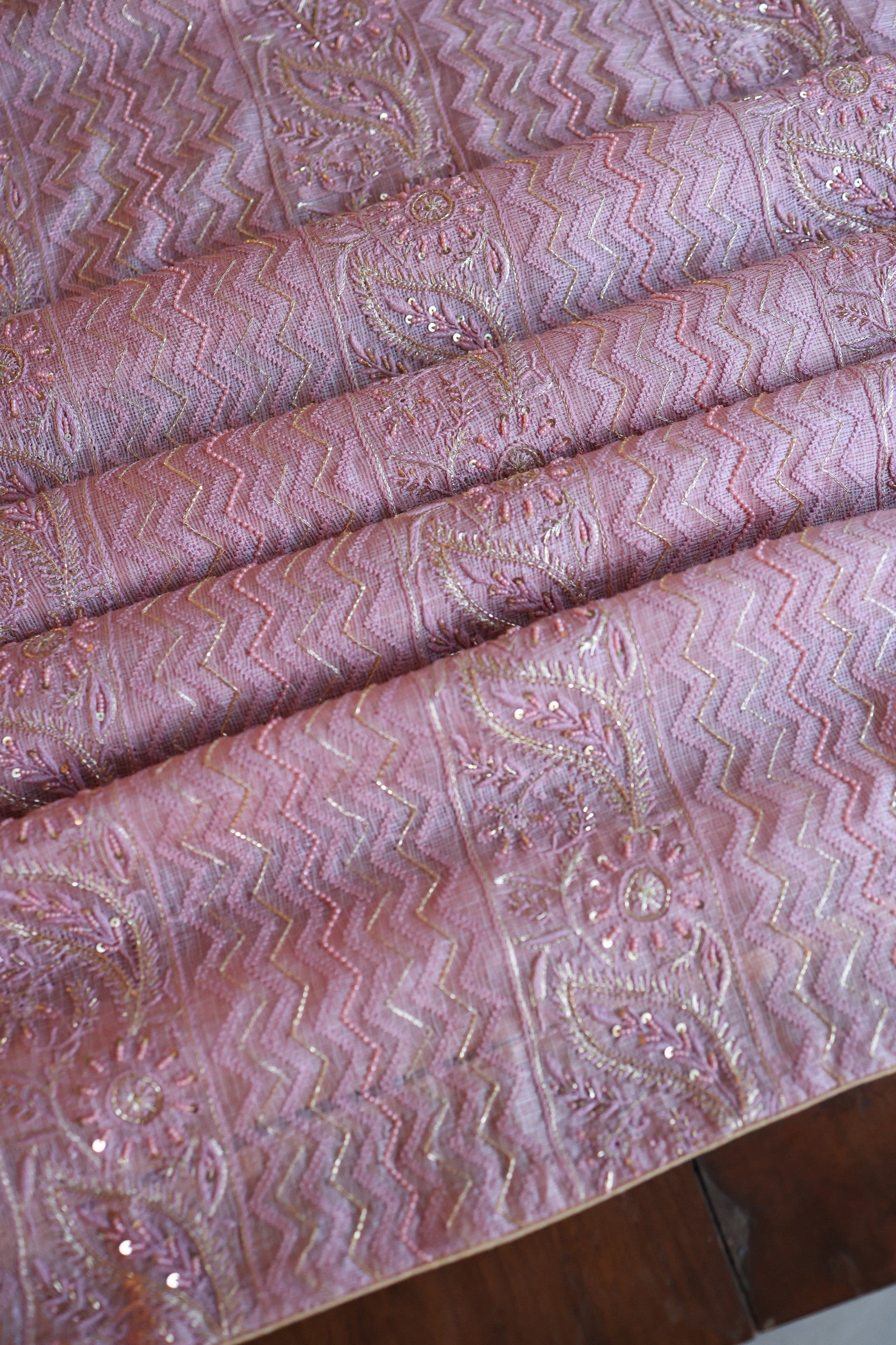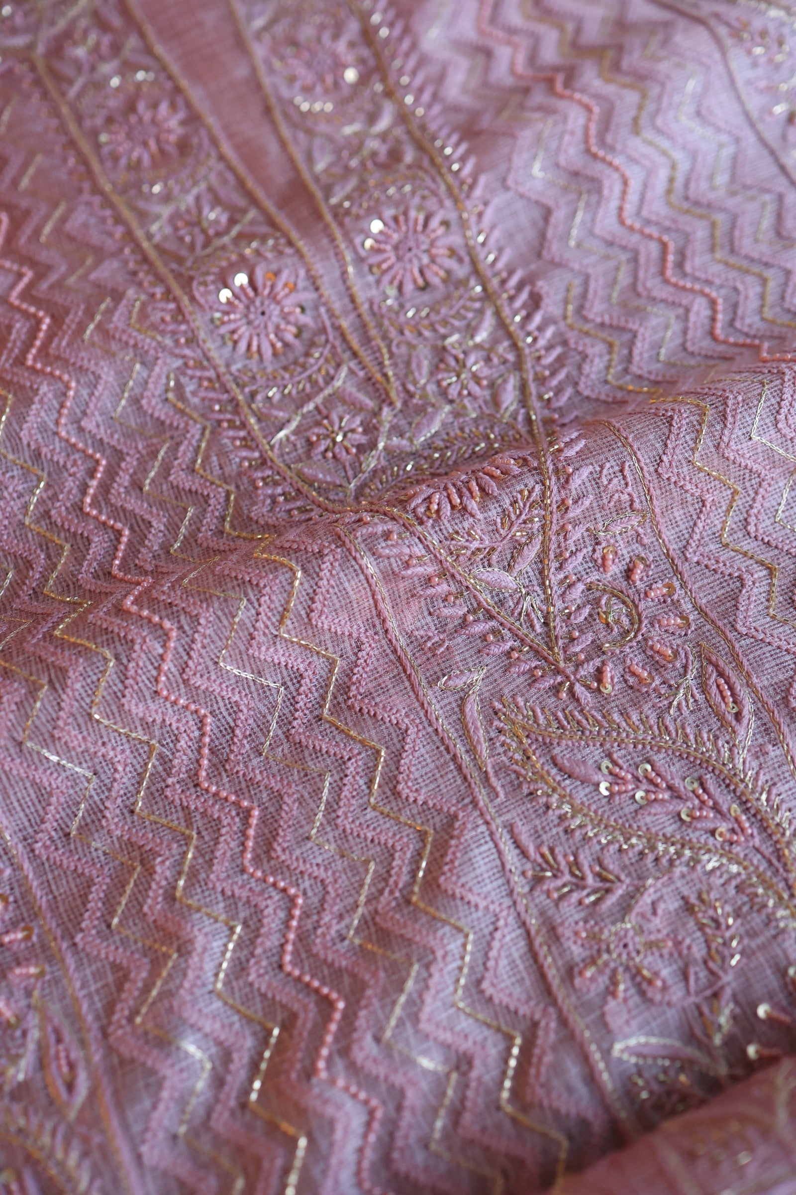 Pastel Mauve Rasm Kota Tussar Chikankari Unstitched Chikankari Fabrics