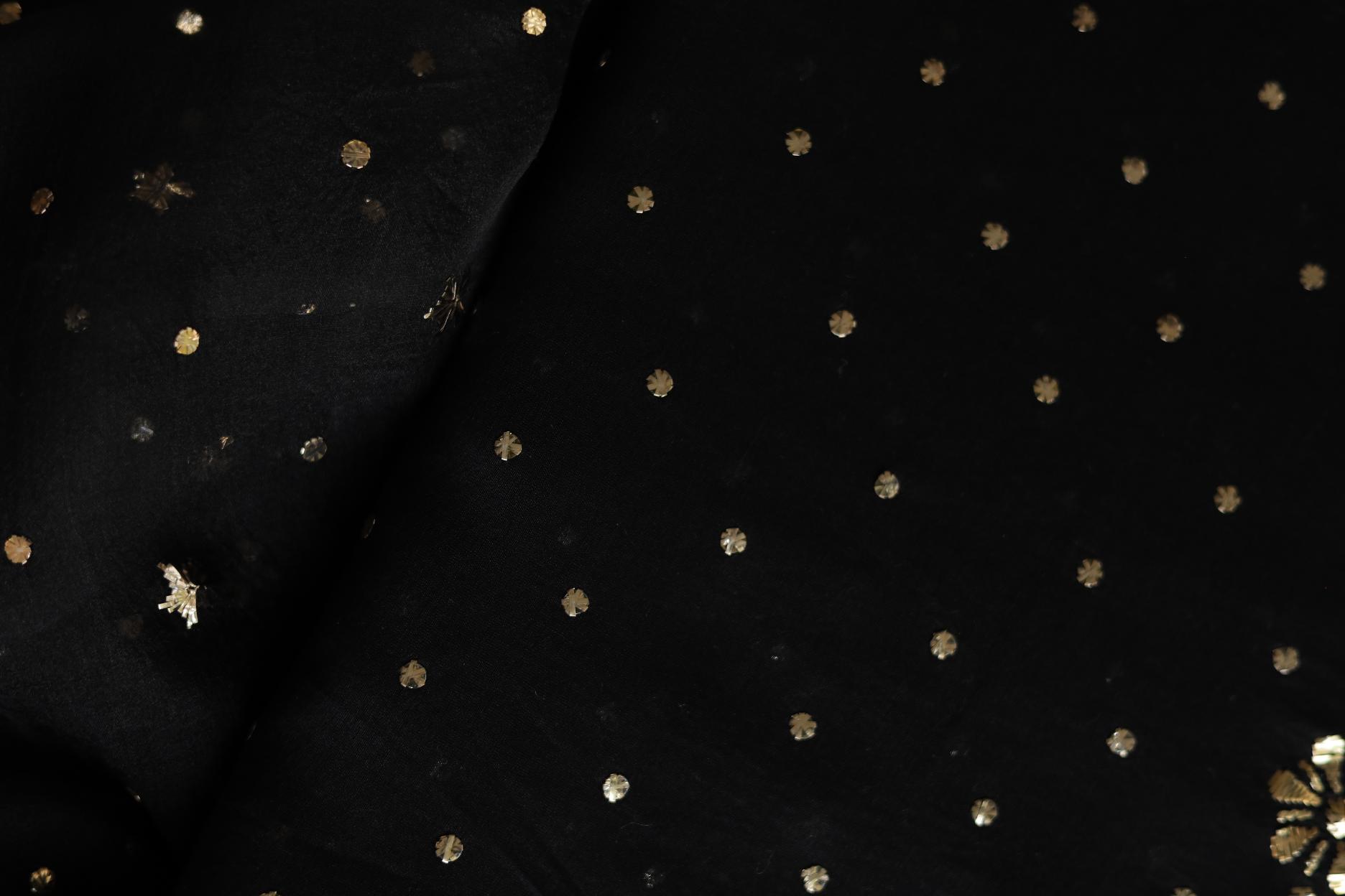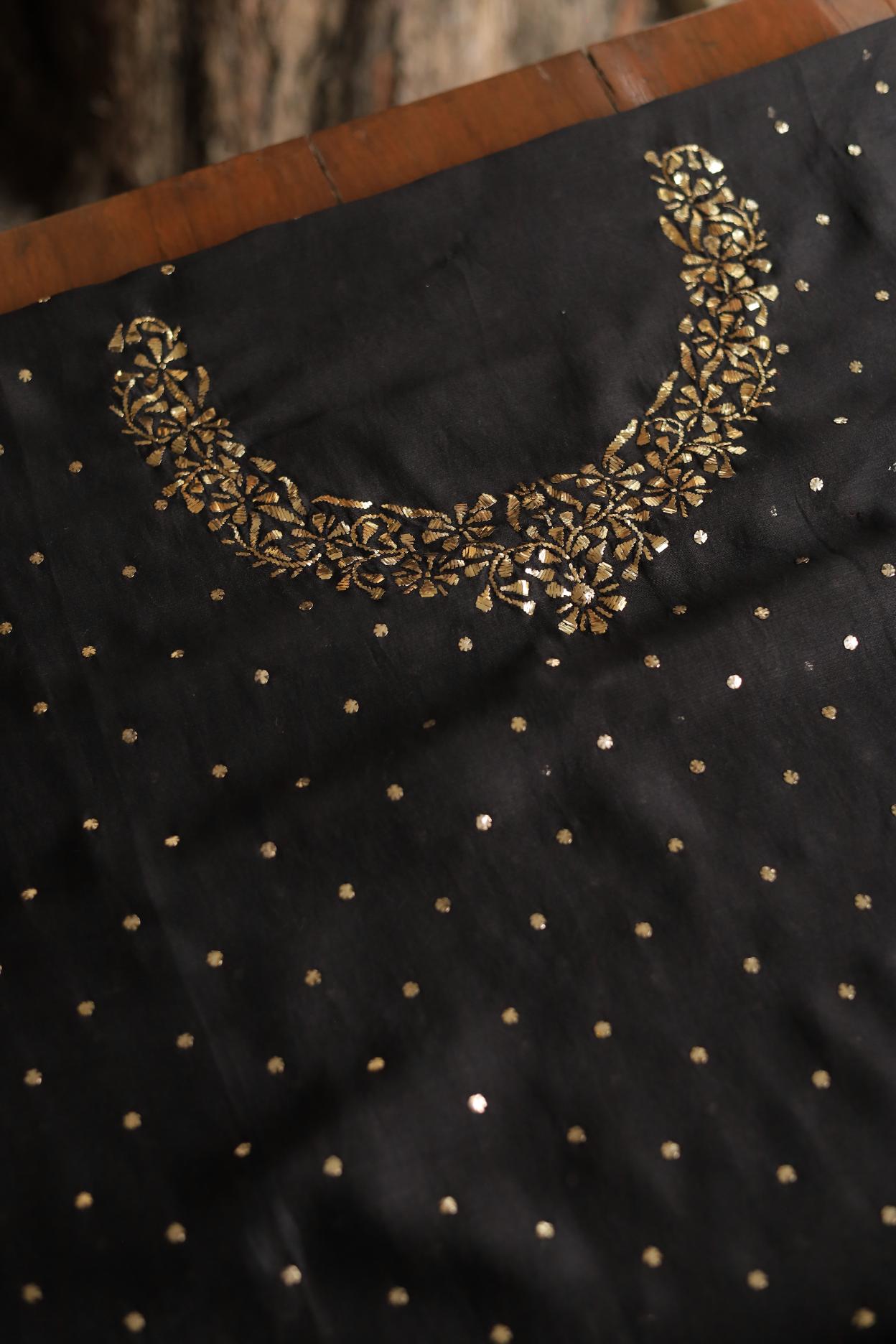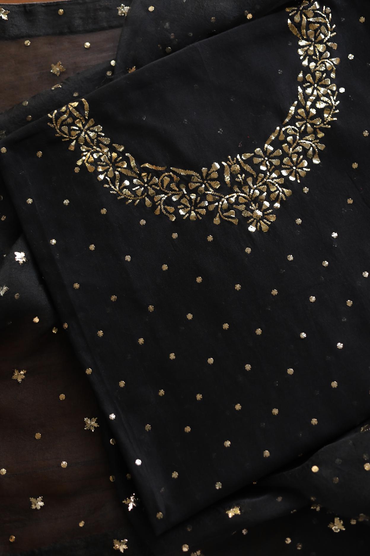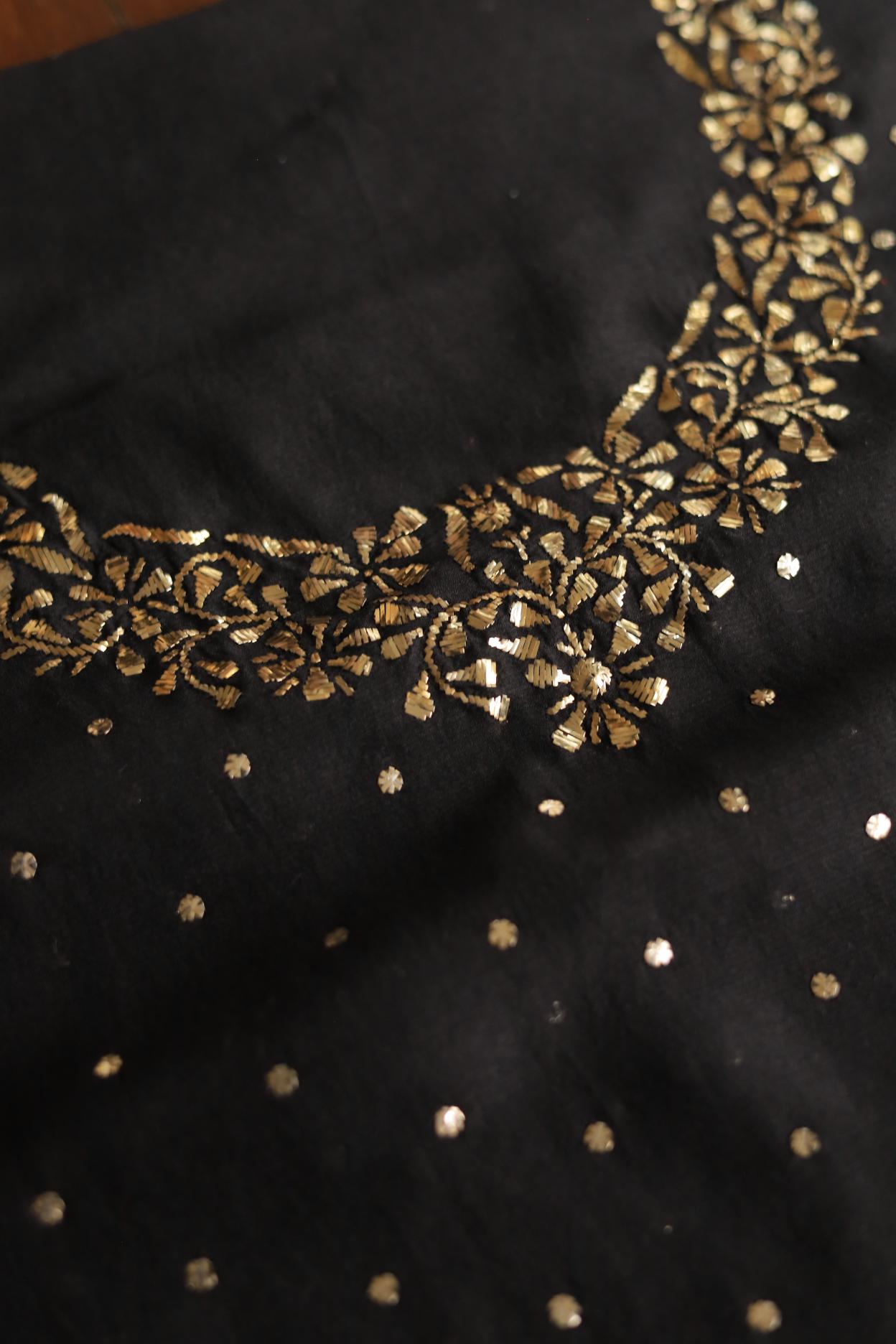 Black Chanderi Silk Mukaish Badla Unstitched Fabrics