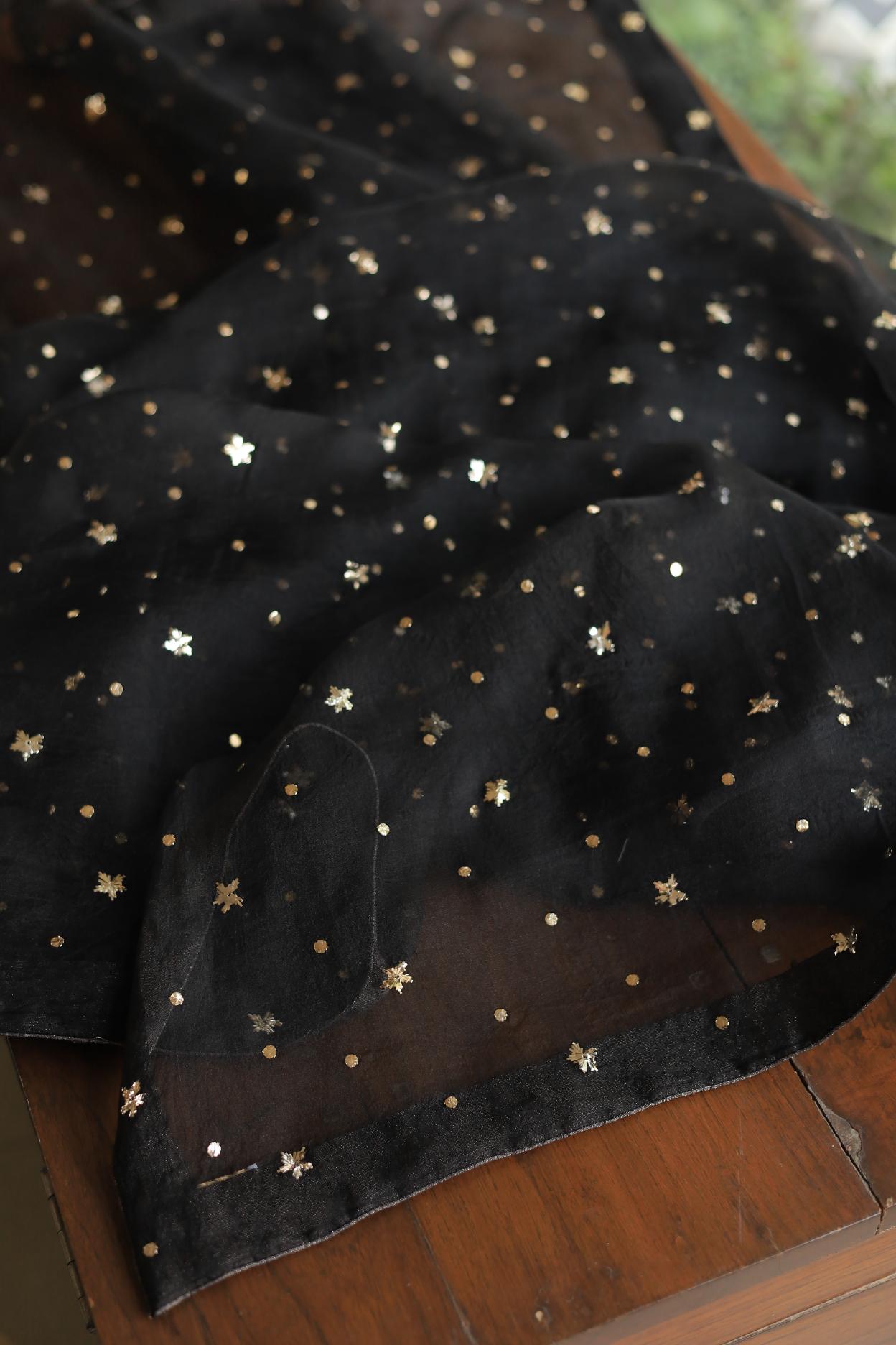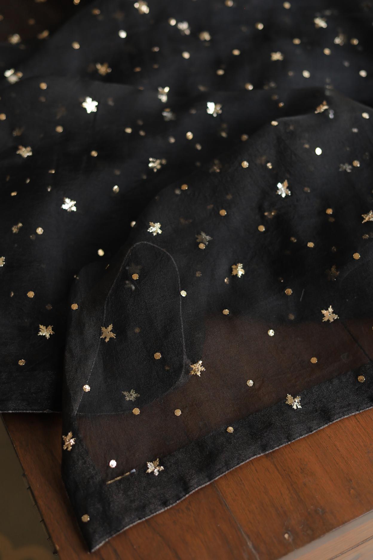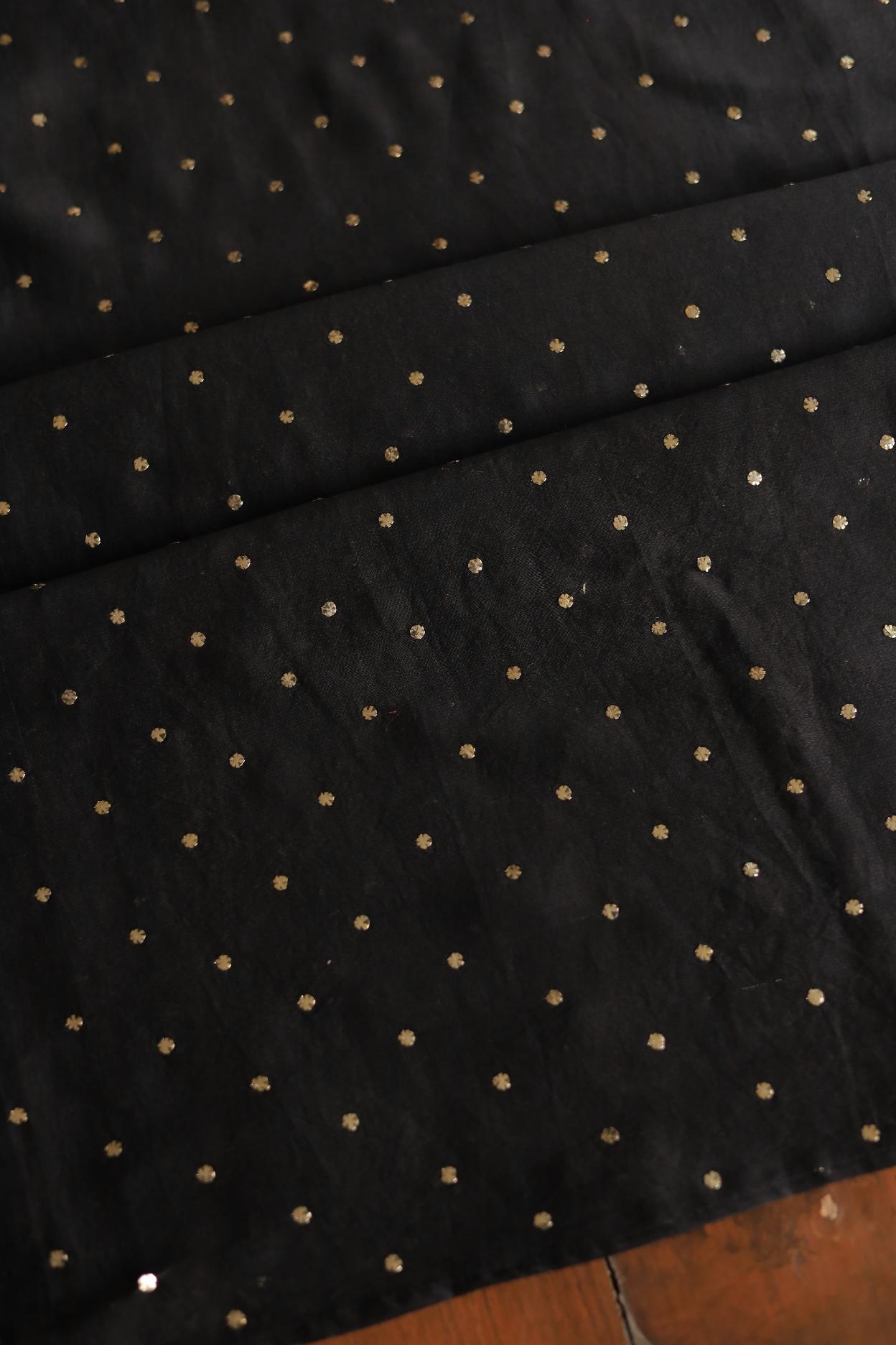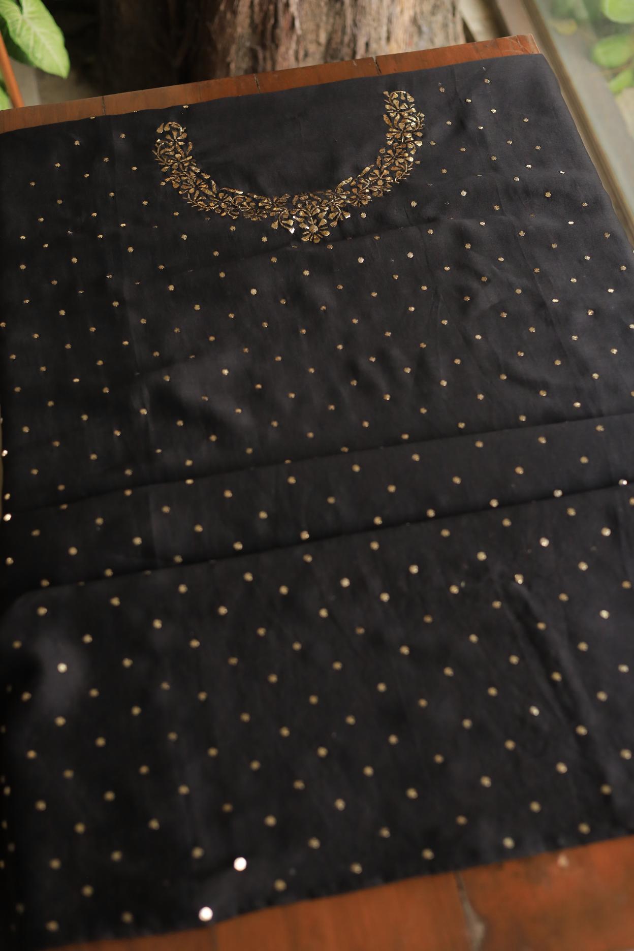 Black Chanderi Silk Mukaish Badla Unstitched Fabrics