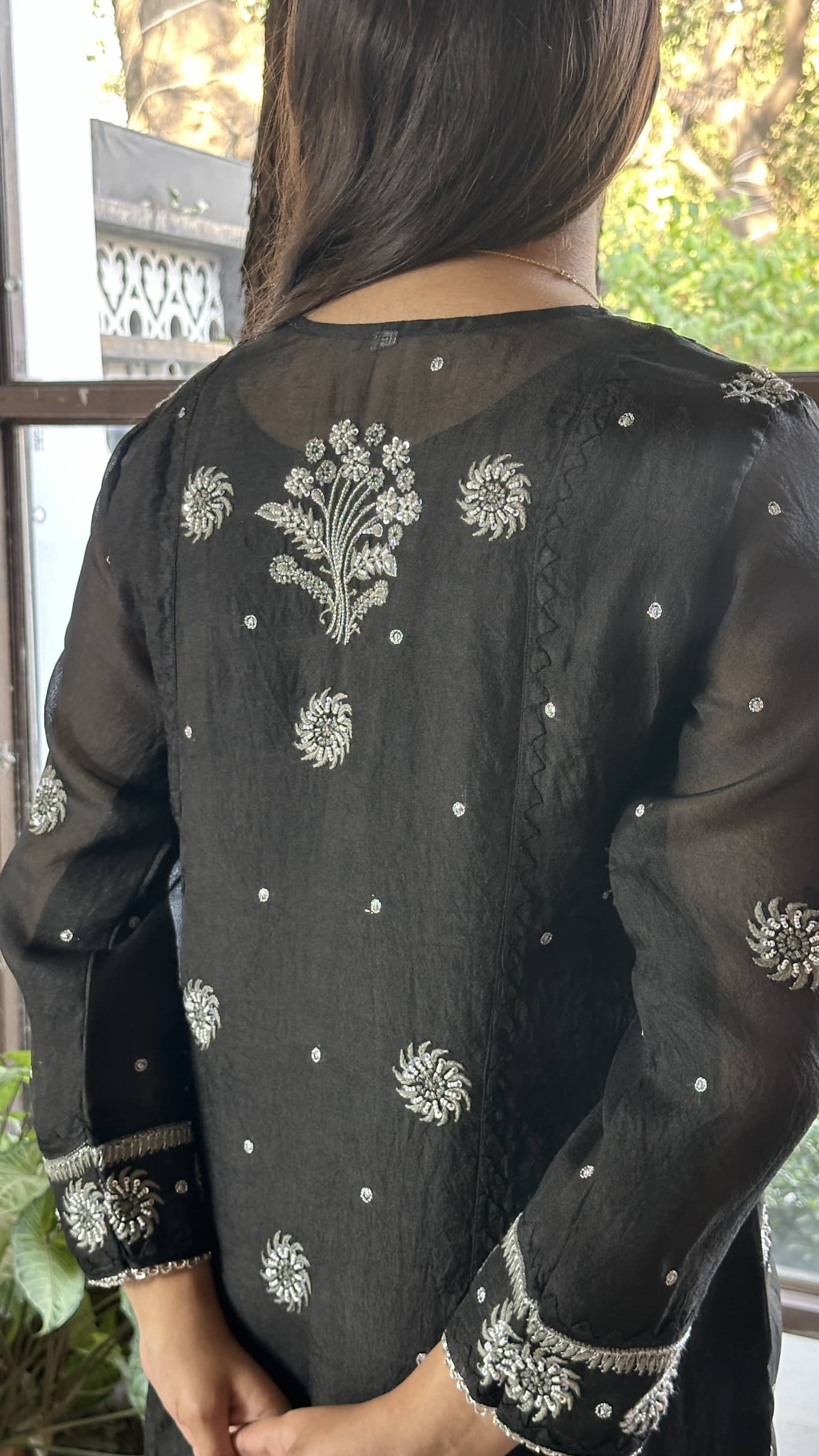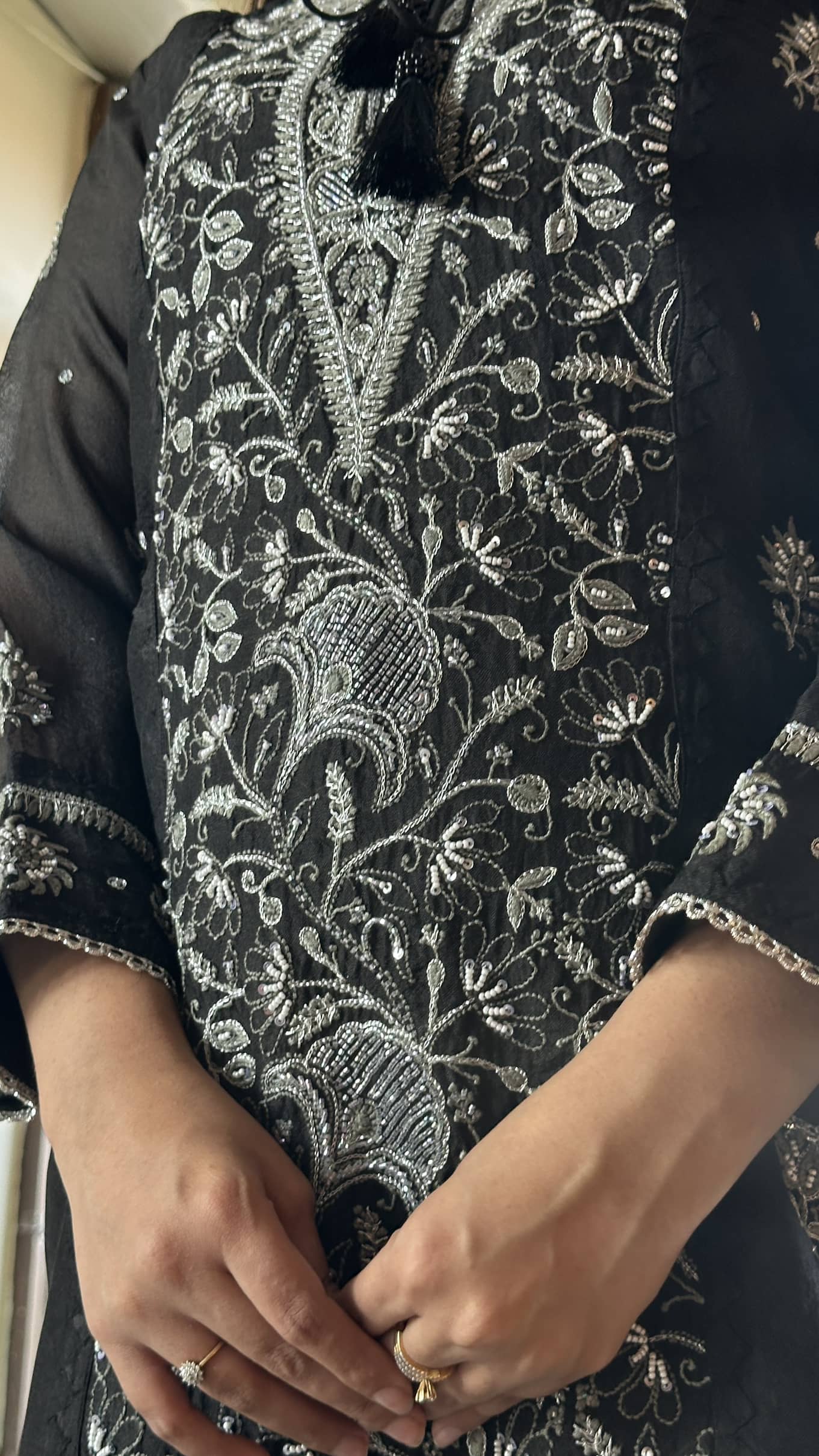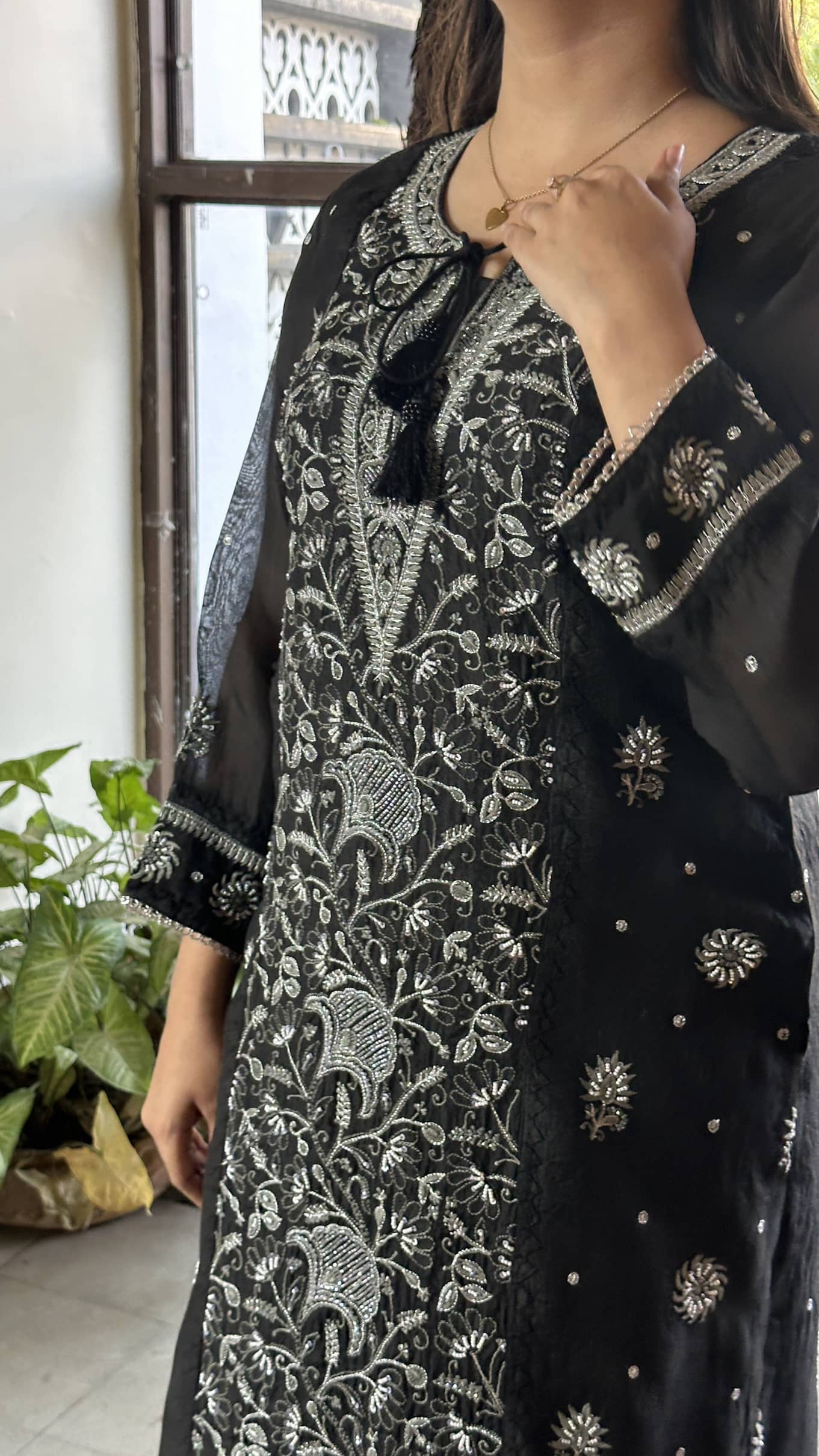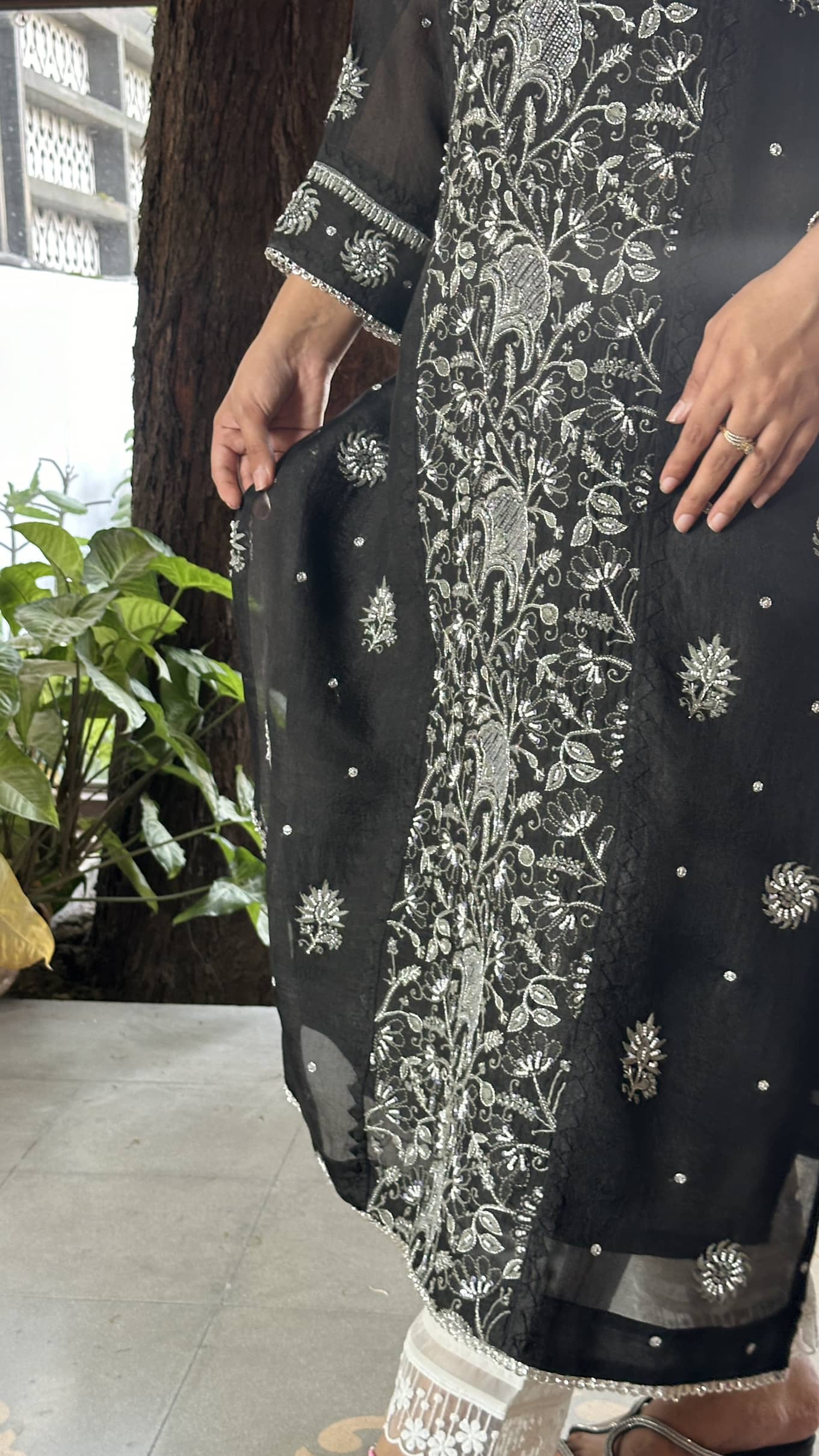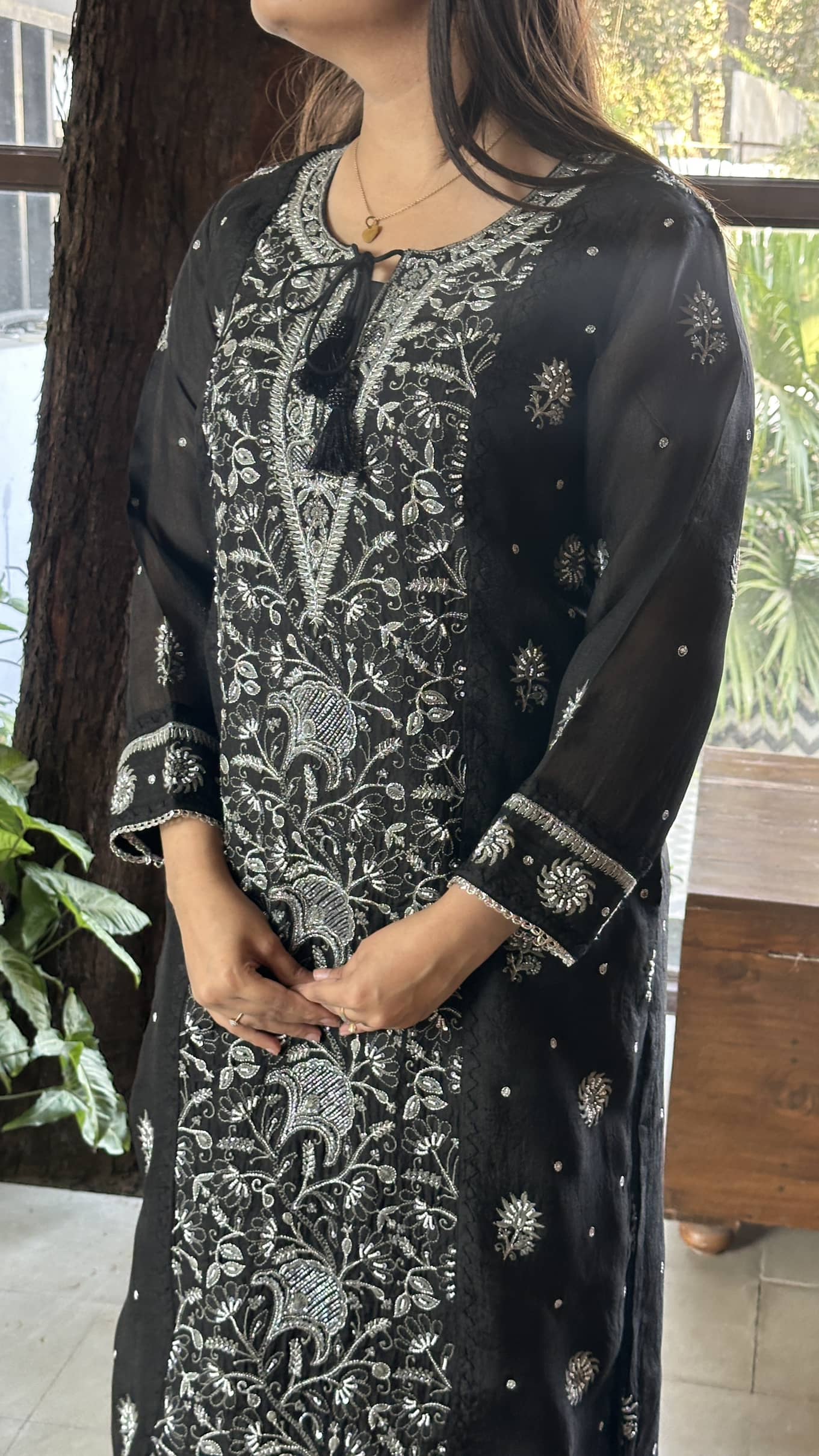 Black Noor Organza Silk Chikankari Straight Cut Kurta Dupatta Set