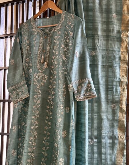 Blue Basak Chikankari Ready To Wear Kurta Dupatta Set