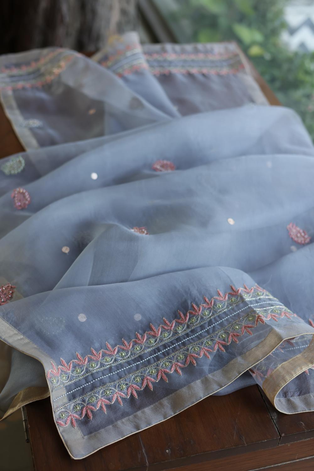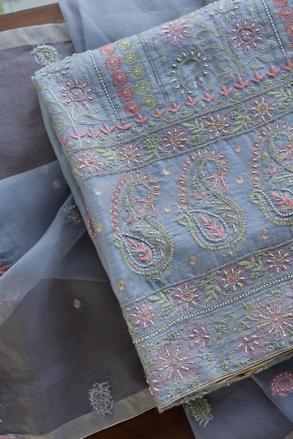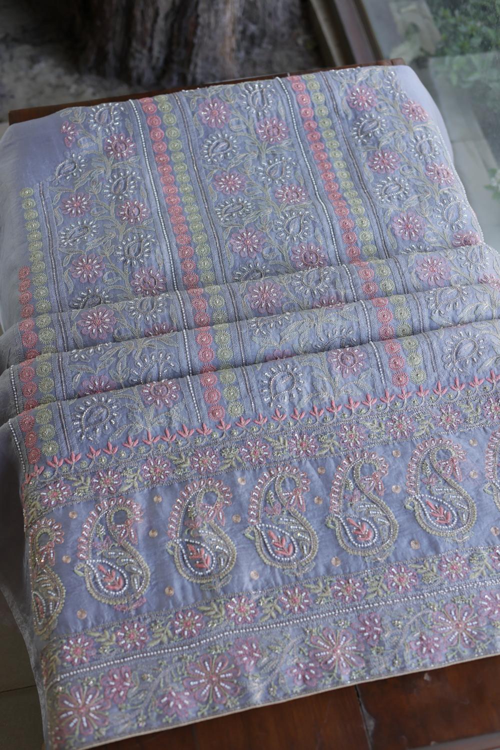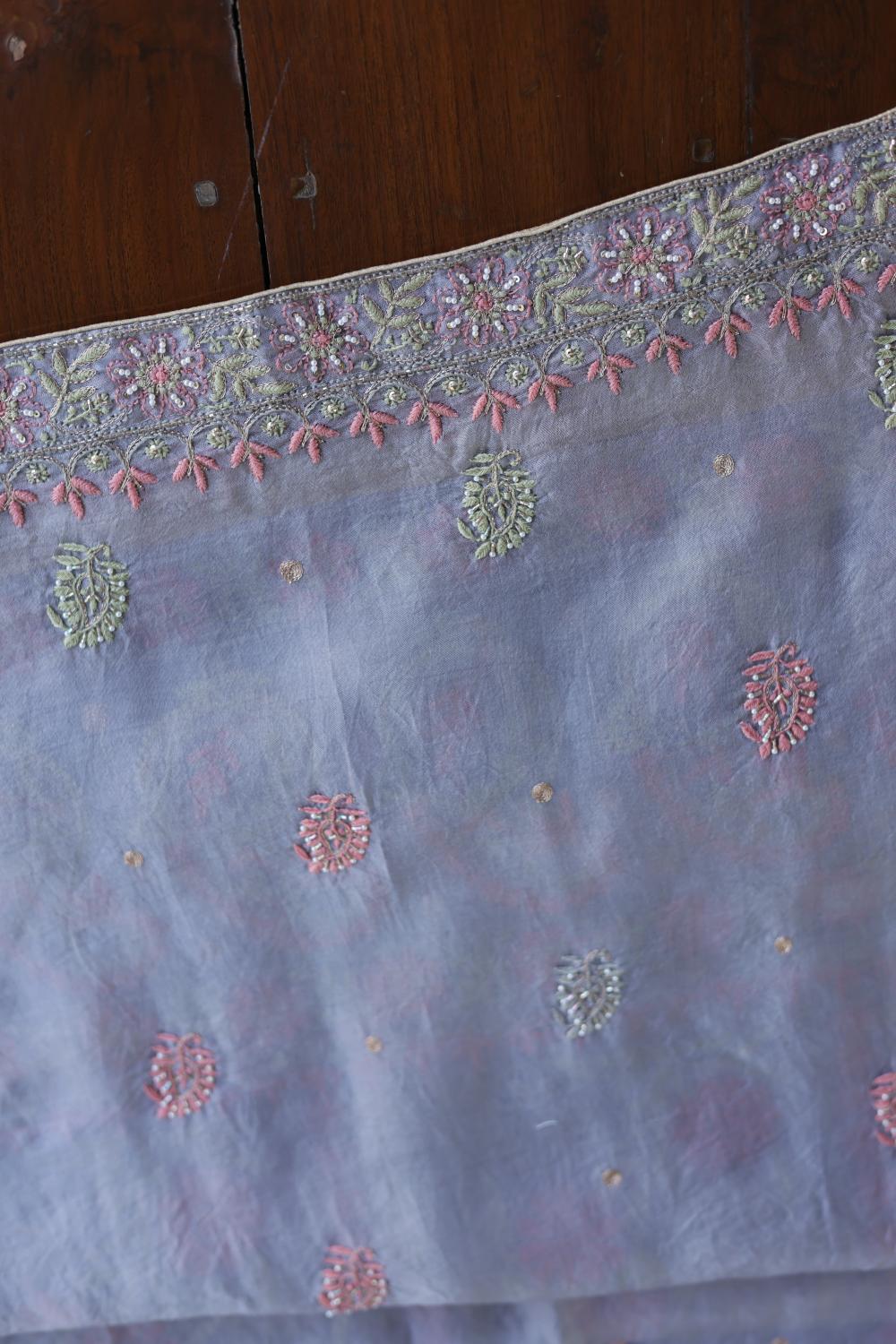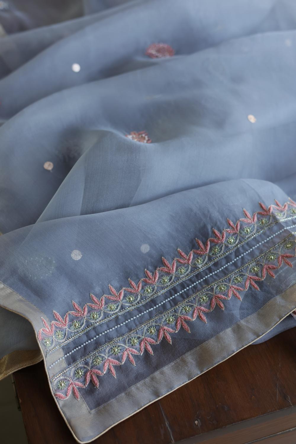 Organza's in our pastel shades are a dreamy affair done with intricate dual tone Chikankari embroideries and add on with our signature SAMAN's Ari and beads work.
